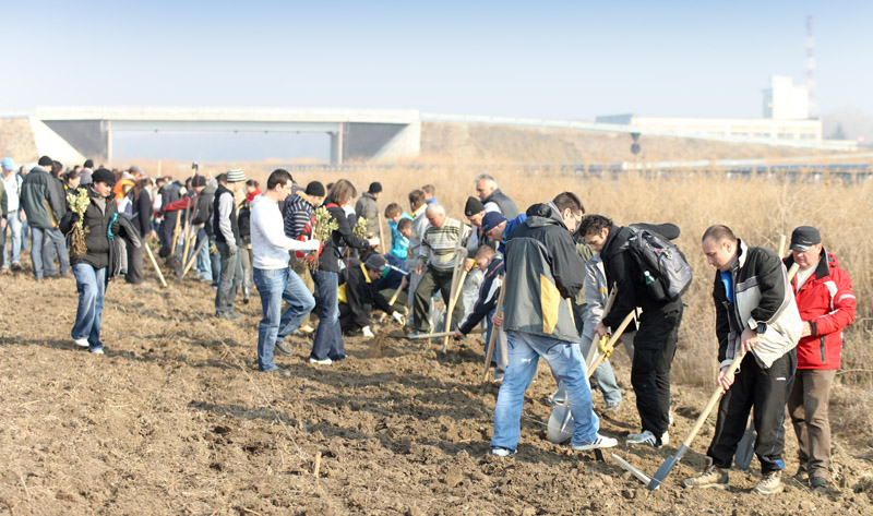 Primele sute de copaci au fost plantaţi sâmbătă, 19 noiembrie 2011, de peste o sută de voluntari dintre angajaţii RTR din Bucureşti, Mioveni şi Titu. Solidari cu viziunea RTR de dezvoltare durabilă, ei şi-au lăsat amprenta pe viitorul centrului.