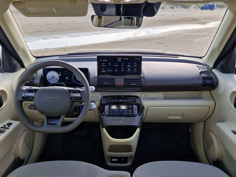 Reprezintă revenirea lui Hyundai pe piața europeană în segmentul mini, de data asta cu un model electric. Firesc, este concurent direct cu Dacia Spring, doar că puțin mai mare – mai lung cu 12 cm, mai înalt cu 6 cm și mai lat cu doar 3 cm. Diferențele majore vin în primul rând de la arhitectura interioară – are banchetă fracționată 50-50% și culisabilă independent. Rezultă un habitaclu foarte bine organizat și versatil, locurile din spate putând găzdui, la nevoie, chiar și doi adulți. În schimb, dacă este nevoie de portbagaj, împingi bancheta și ai la dispoziție un volum de 280 de litri (aproape cât Spring).