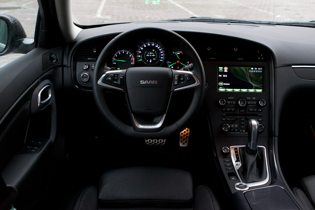 Habitaclul noului 9-5 a crescut în dimensiuni, ampatamentul fiind mai lung cu 134 mm faţă de modelul precedent. Astfel, spaţiul pentru şofer de pe banchetă sau volumul portbagjului sunt la acelaşi nivel cu maşinile germane de clasă mare, care cresc la fiecare schimbare de generaţie. Dar marea majoritate a clienţilor Saab îşi vor conduce singuri maşina. Asta nu pentru că profilul lateral dinamic limitează spaţiul pentru cap pe bancheta din spate atunci când vorbim de persoane mai înalte de 1,85 m. Pentru că, în buna tradiţie Saab, interiorul este construit cu gândul la şofer, consola centrală a rămas orientată către postul de conducere.