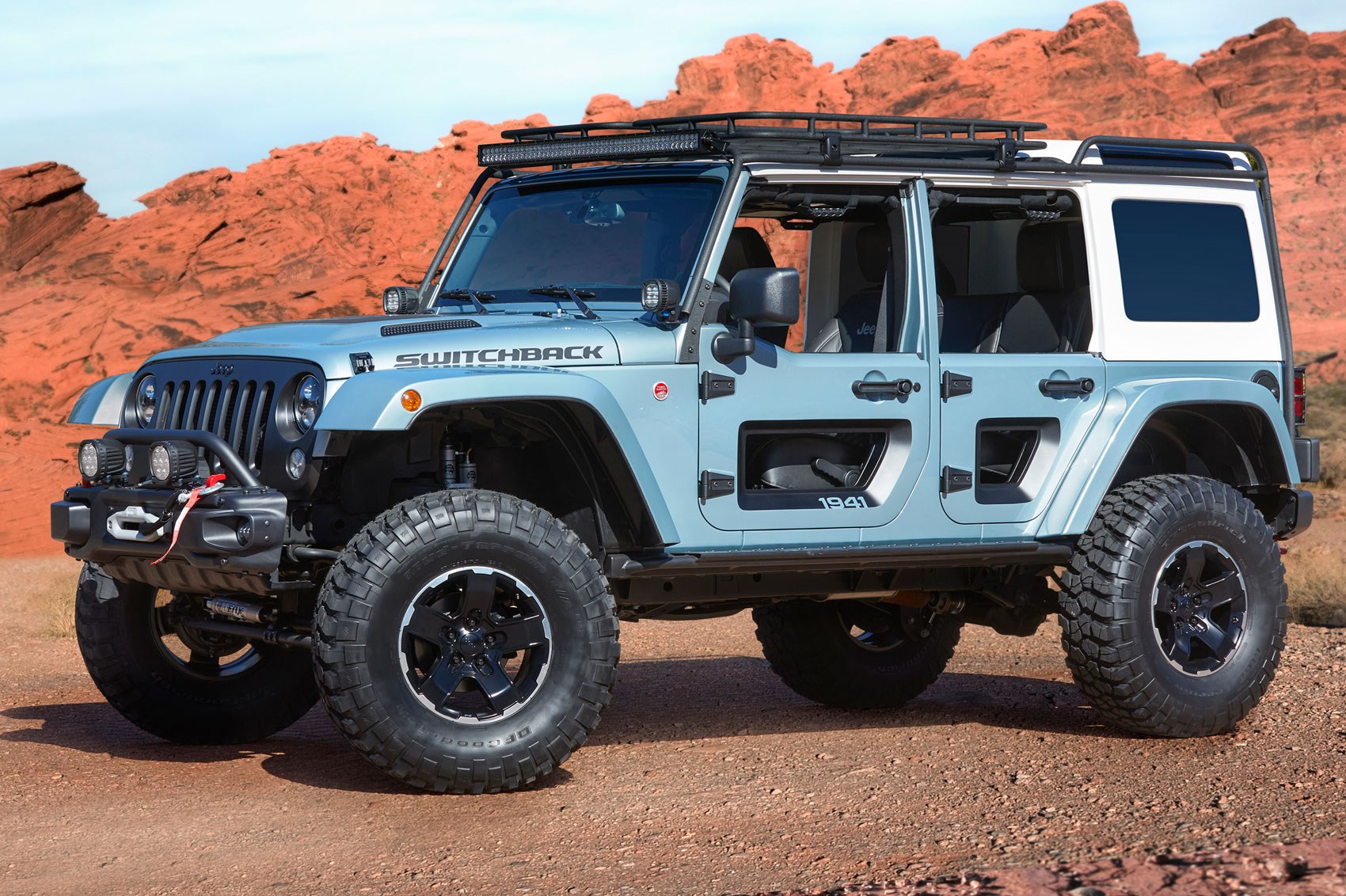 Prototipul Switchback seamănă cu un stand mobil în care sunt expuse cele mai bune și mai interesante componente bespoke create de divizia Jeep Mopar. Derivat din actuala generație Wrangler, Switchback este înarmat cu echipament off-road profesional, inclusiv suspensii față și spate Dana 44, un troliu și protecții suplimentare pentru diferențiale.