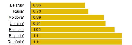 Graficul publicat luna aceasta de Global Petrol Prices arată că de la est vine benzina ieftină. Cu 0,66 dolari pe litru în Belarus, 0,70 în Rusia și 0,89 în Moldova, țările din est propun cele mai convenabile costuri la pompă. Tot mai ieftin ca în România puteți cumpăra benzină din Ucraina (0,91) sau de la vecinii bulgaria, dacă aveți de gând să vă faceți vacanța la sud de Dunăre.