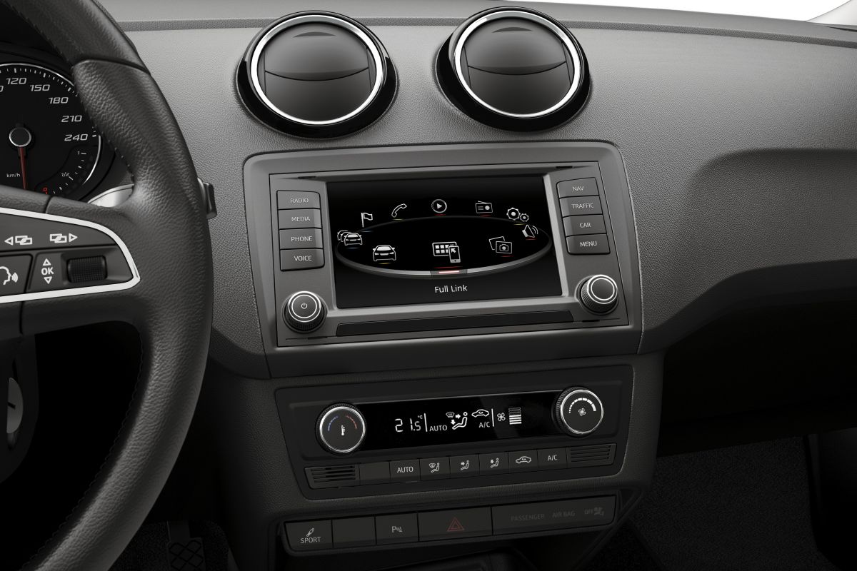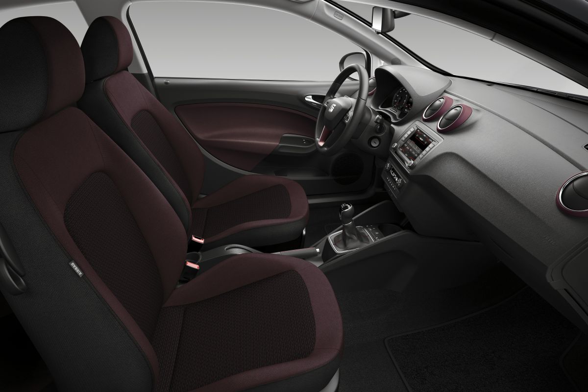 Seat a revizuit sensibil şi interiorul noului Ibiza facelift. Comenzile de pe consola centrală au fost reorganizate, iar sistemul de infotainment depăşit a fost înlocuit cu noua centrală de comandă Easy Connect cu touchscreen de 5 inch. Opţional, Seat oferă Media System Navi, cu touchscreen de 7 inch şi funcţii precum MirrorLink. Noile linii de echipare Color Lines aduc, în plus, posibilităţi numeroase de personalizare cromatică a elementelor de decor interioare şi chiar exterioare (oglinzi, grilă).