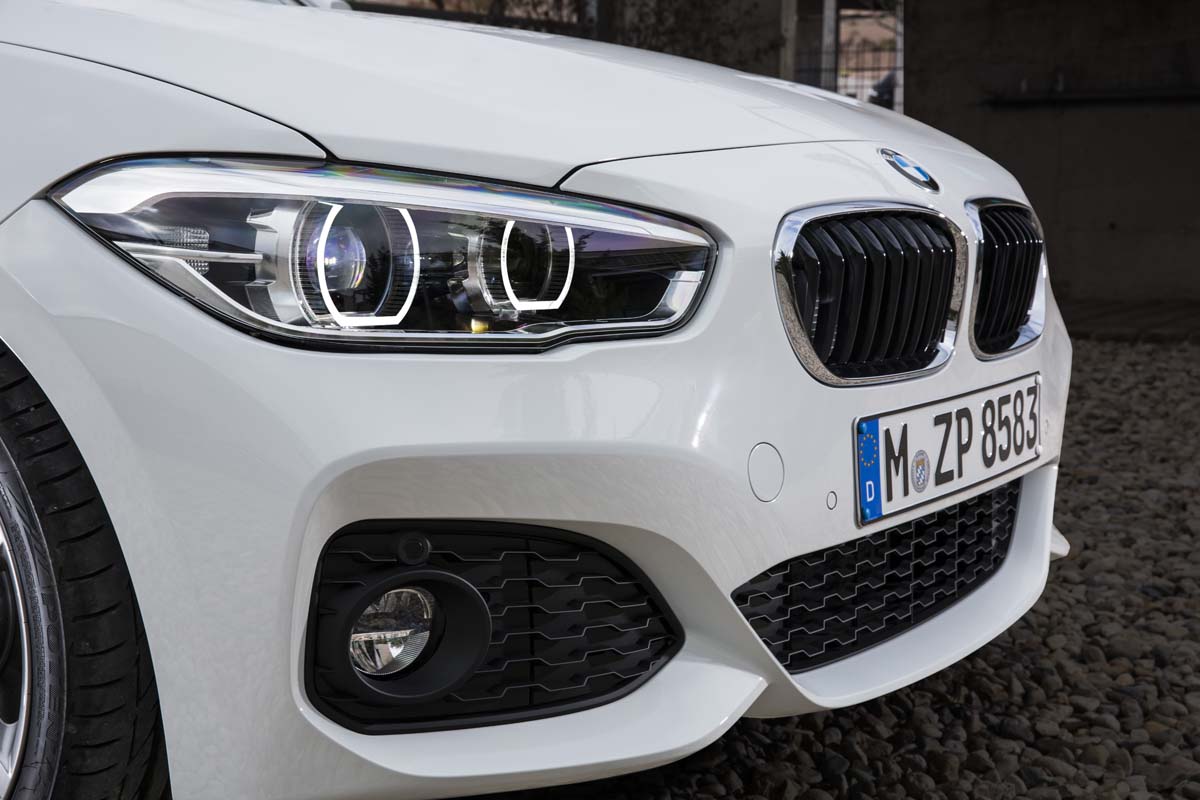 Redesenate, grila BMW a radiatorului şi prizele largi de aer contribuie la accentuarea potenţialului dinamic al automobilului. Farurile, cu o geometrie semnificativ mai plată, au un rol similar. Acestea dispun standard de lumini LED pentru zi şi opţional pot fi comandate în configuraţie LED integrală. Stopurile au fost şi ele remodelate complet. Un nou design, bazat pe tehnologia LED, subliniază forma “L” caracteristică modelelor BMW. La interior, designul sofisticat al părţii superioare a consolei centrale, cu butoanele de control pentru sistemele radio şi de aer condiţionat, este punctul principal care subliniază ambianţa premium de la bordul noului BMW Seria 1.