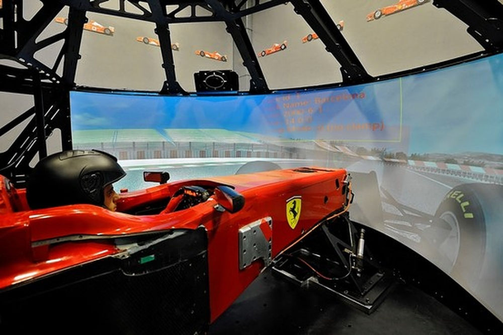 Ferrari, ce a pierdut startul în acest departament pentru că în urmă cu 20 de ani avea la îndemȃnă un instrument de lucru mult superior a utilizat din 2010 un simulator complex, avȃnd aspectul unui păianjen.