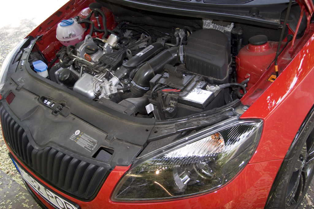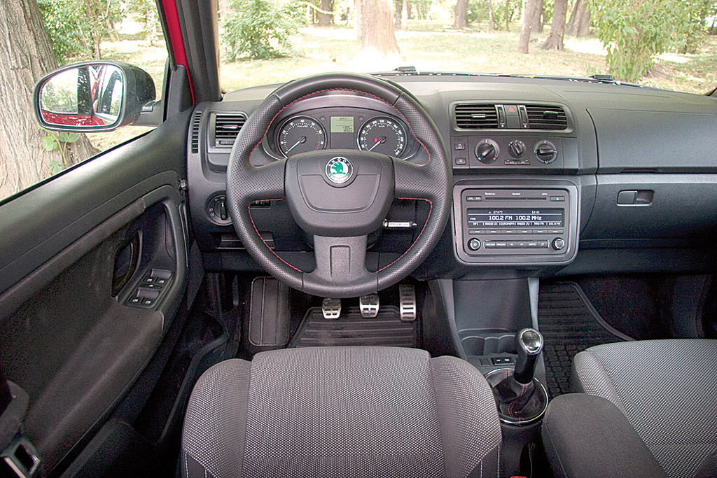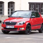 Așadar, atmosfera generală amintește de competițiile de viteză, iar Fabia face față cu brio unor cerințe normale pe care le poate avea un șofer de la o astfel de mașină. Motorul de 1.2 TSI s-a dovedit foarte vivace, bineînțeles turbina jucând un rol important în livrarea cuplului la turații joase. Etajarea lungă a treptelor cutiei fac ușoare depășirile în afara orașului, iar pneurile relativ late asigură un plus de aderență în orice situație. Mulțumită rigidității caroseriei mașina se comportă exemplar la trecerile peste denivelări, iar atunci când abordezi un drum virajat nu vei simți nevoia să încetinești prea mult.