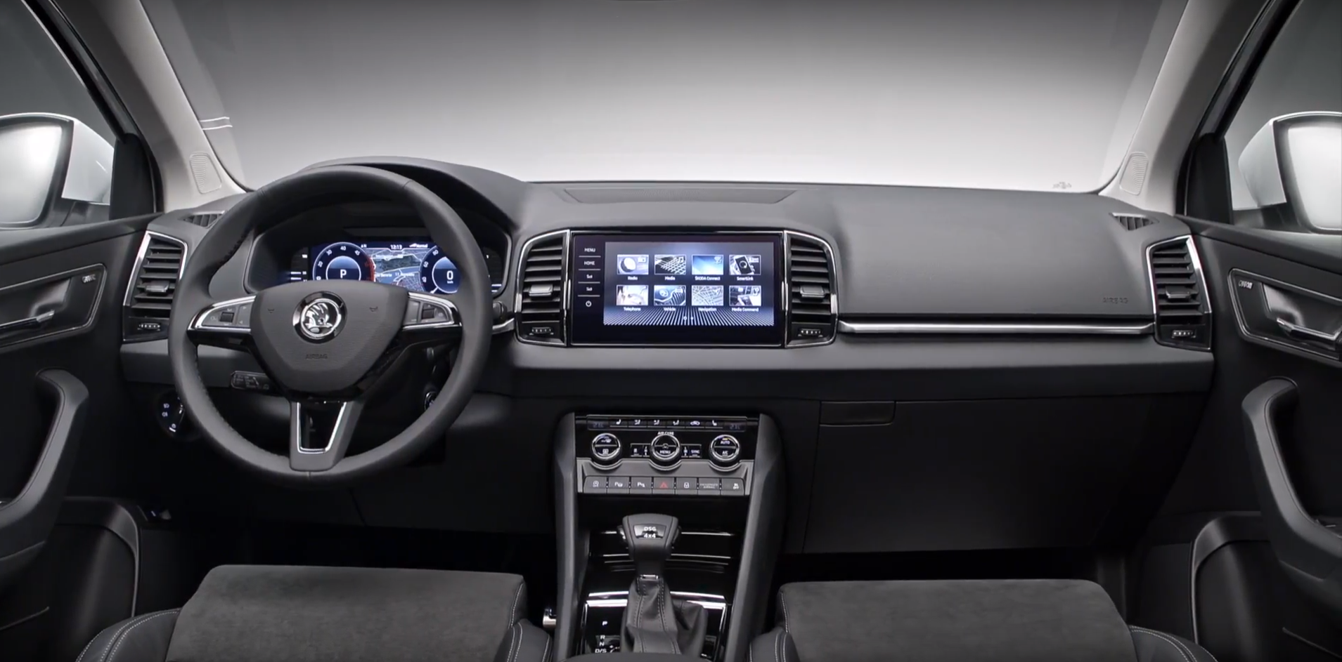 Nici amatorii de gadgeturi nu au fost uitați, aceștia putând comanda contra cost sistemul multimedia și de navigație de top Columbus, cu touchscreen de 9,2 inch, control parțial prin gesturi, funcție de hotspot Wi-Fi și Screen Mirroring, respectiv de încărcare prin inducție și de integrare completă pentru dispozitivele iOS și Android (AndroidAuto, Apple CarPlay). Lista sistemelor de asistență include pilot automat adaptiv cu senzor radar și funcție de frânare automată și detecție a pietonilor, asistent de bandă și monitorizare a unghiurilor moarte. În premieră absolută pentru Skoda, noul Karoq va putea fi comandat alături de instrumentele de bord digitale, cunoscute de la VW, precum și cu un buton de apelare a serviciului de urgență 112.