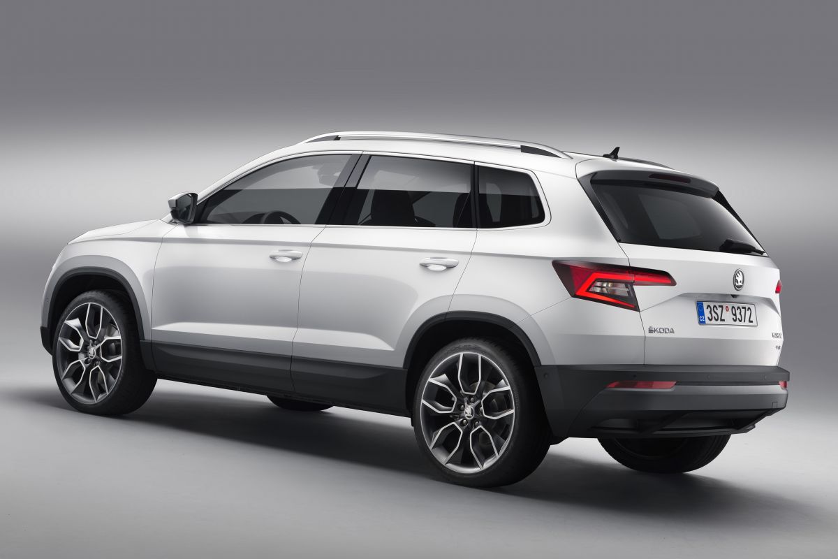 Cel mai nou SUV compact Skoda este construit pe platforma modulară MQB a grupului VW și are o lungime de 4,38 m, fiind cu 11 cm mai scurtă decât VW Tiguan (4,49 m) și cu 4 cm mai lungă decât Seat Ateca (4,34 m). Comparativ cu Yeti, noua Skoda Karoq este cu 16 cm mai mare, însă Kodiaq, cu 4,70 m, rămâne cel mai mare SUV de segment C din gama constructorului ceh. Ampatamentul măsoară 2,64 m (2,63 m pentru versiunile 4×4), valoare identică cu cea afișată de Seat Ateca, iar lățimea și înălțimea 1,84 m, respectiv 1,6 m.