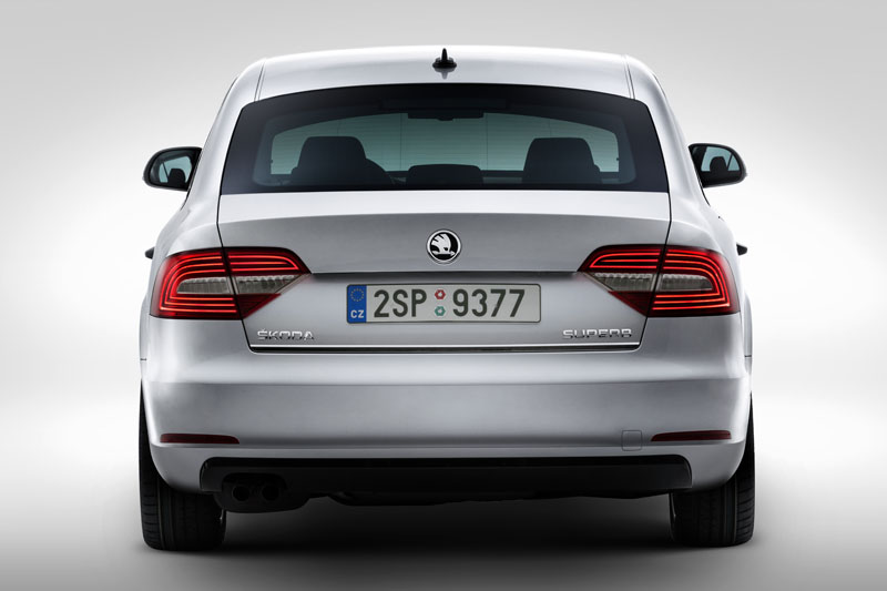Secţiunile posterioare ale modelelor Superb limuzină și combi au fost, de asemenea, redesenate complet și au devenit mai clare, ordonate și precise. Grafica blocurilor optice spate a fost reinterpretată pentru a sublinia și mai mult forma literei C, un detaliu tipic al mărcii. Aceasta va fi prima dată când trei benzi luminoase cu LED-uri vor crea această formă pentru modelul Superb. Două elemente triunghiulare încorporate în capota portbagajului reprezintă o altă caracteristică inconfundabilă a noului design ŠKODA.