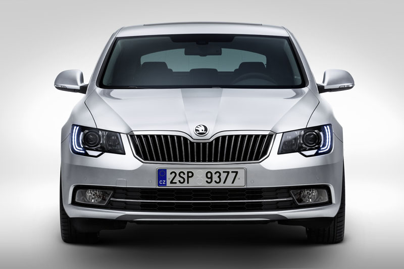 ŠKODA Superb dispune de un design complet nou pentru partea frontală și cea posterioară. Elementele caracteristice ale noului limbaj de design sunt evidente: linii clare, calitate, precizie și proporții echilibrate. Partea frontală, care a fost redesenată complet până la montantul A este acum mult mai distinctă. Grila, sigla mașinii, farurile și proiectoarele de ceață, barele de protecție, aripile față și capota sunt noi. Partea frontală cu tușe distincte, cu o grilă a radiatorului substanțial mai mare, precum și farurile complet redesenate creează o imagine ce sugerează siguranța. Farurile bi-xenon cu lumini de zi cu LED integrate sunt disponibile pentru prima dată în gama Superb.
