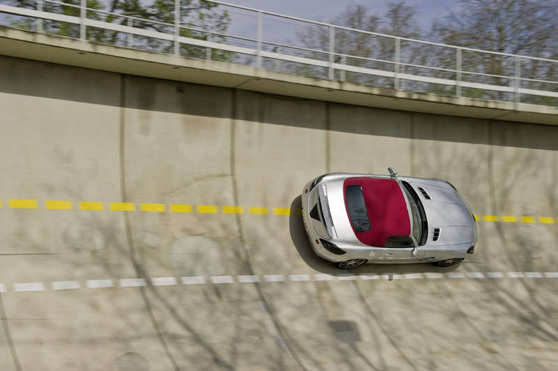 Pentru a mentine un nivel de rigiditate cat mai ridicat inginerii AMG au intarit unele zone cheie ale sasiului. Din declaratiile lor, scopul acestui model este de a oferi performante dinamice demne de un supercar pentru cei care prefera experienta open-top. Intr-o maniera strict nemteasca, SLS AMG Roadster a trecut prin toate testele posibile, totul pentru a asigura ca noul soft top va face fata indiferent de profilul climatic sau viteza de deplasare.