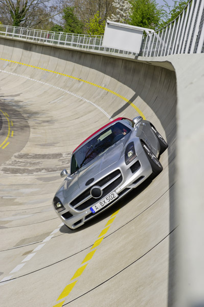 Al doilea model dezvoltat integral de divizia AMG a Mercedes-Benz se prezintă marelui public. Deși a fost dezvoltat în paralel cu versiunea coupe, SLS Roadster va fi lansat oficial abia în luna septembrie, cu peste un an întârziere față de coupe.