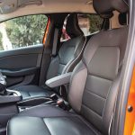 Pe lângă portbagajul lui 208, noul Clio oferă 43 litri în plus, dar ridică pragul de încărcare la 78 cm, obligându-mă să-mi salt valiza peste măsură de sus pentru a-l umple. Are, însă, fund dublu, care asigură o suprafață plană la rabatarea spătarului banchetei, iar luneta joasă îi asigură șoferului cea mai bună vizibilitate posterioară din grup.