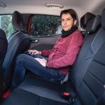 Spațiul pe banchetă este cel mai mic din grup, dar, chiar și așa, nu am avut probleme în a-mi plasa strategic cei 1,77 m din dotare. Doar călătoriile în patru sunt plăcute, pentru că cel mai îngust habitaclu, combinat cu bancheta profilată deranjează pasagerul din centru.
