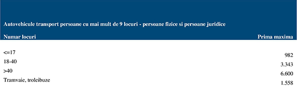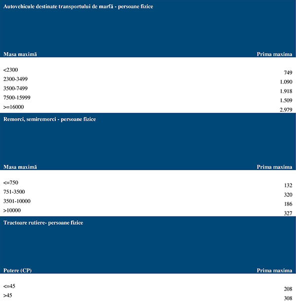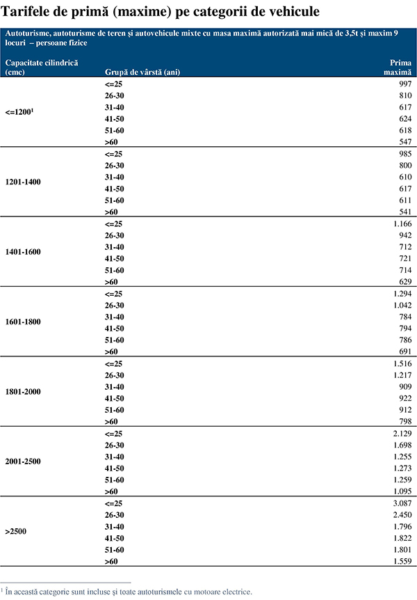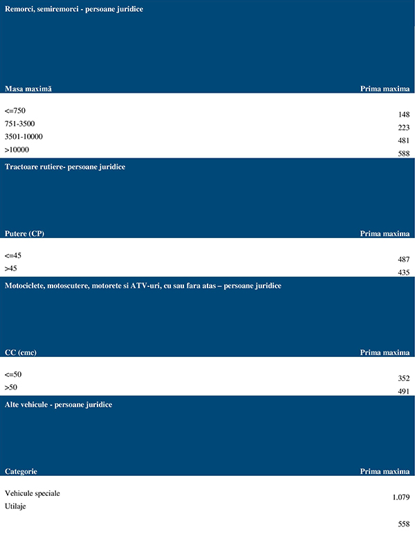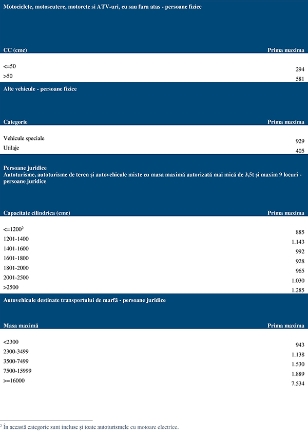 Tarife de primă maxime se stabilesc pentru următoarele categorii de vehicule:
