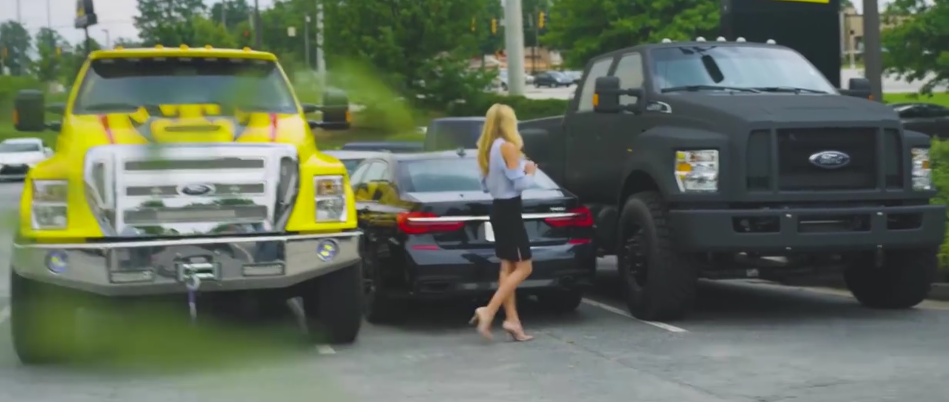Se pregăteau să râdă cu lacrimi de proprietarul de BMW pe care l-au blocat în parcare, dar aveau să se facă de râs. Un grup de tineri din Statele Unite a tras două pick-up-uri monstruoase foarte aproape de o limuzină Seria 7.