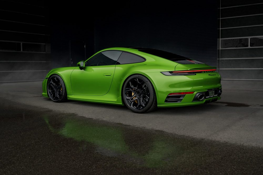 Tunerul bavarez a dezvoltat in scurt timp un kit complet pentru noul model de 911/911 Turbo produs de catre Porsche. Cele mai spectaculoase noutati cuprind un spoiler fata ajustabil, respectiv o prelungire spoiler fata din fibra de carbon. In partea din spate regasim un difuzor aer incorporat in spoiler-ul spate. Ambele repere la care facem referire sunt confectionate manual din fibra de carbon. Posesorii noului model de Porsche 911 au posibilitatea de a opta pentru montarea unui eleron de dimensiuni medii pe capota motorului. In ceea ce priveste terenul de rulare, autoturismul a fost echipat cu jante aliaj cu dimensiuni de 20, respectiv 21 inchi.