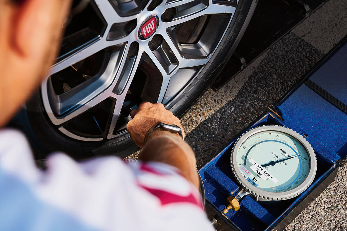 În dimineața testului, am adus mașinile pe circuitul de la Vairano și le-am pregătit de plecare. Am umflat roțile, am verificat presiunea cu un manometru de înaltă precizie, iar după fotografiile de rigoare, am comis nebunia. Am trecut cu anvelopa dreapta-față a fiecărei mașini pe o placă în care am înfipt un cui cu 4 mm diametru. Apoi, am plecat la drum conștienți că, dacă soluția cu mastic nu etanșează gaura, sistemul de monitorizare a anvelopei, obligatoriu pentru toate modelele fabricate mai recent de 1 noiembrie 2014, ar raporta pierderea presiunii.