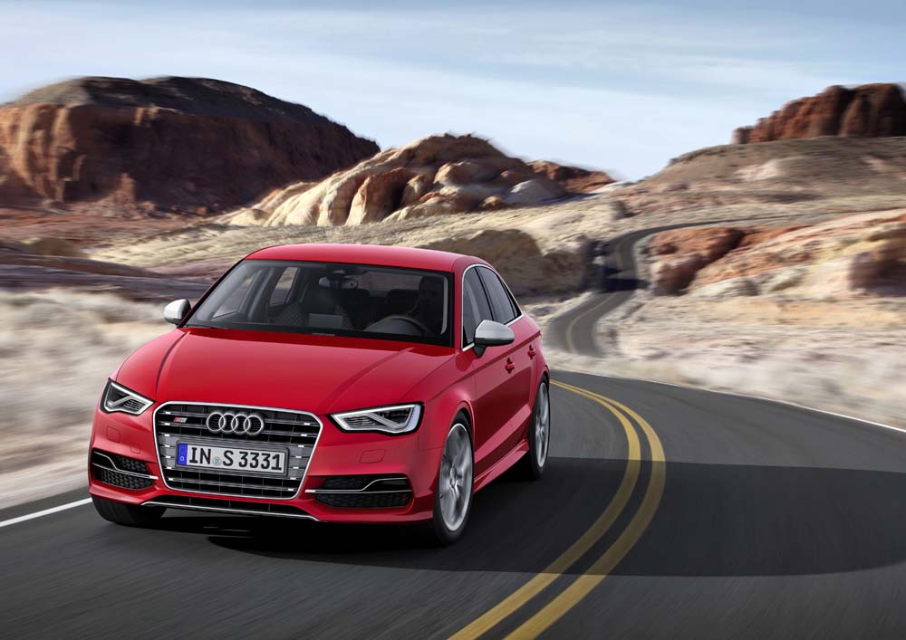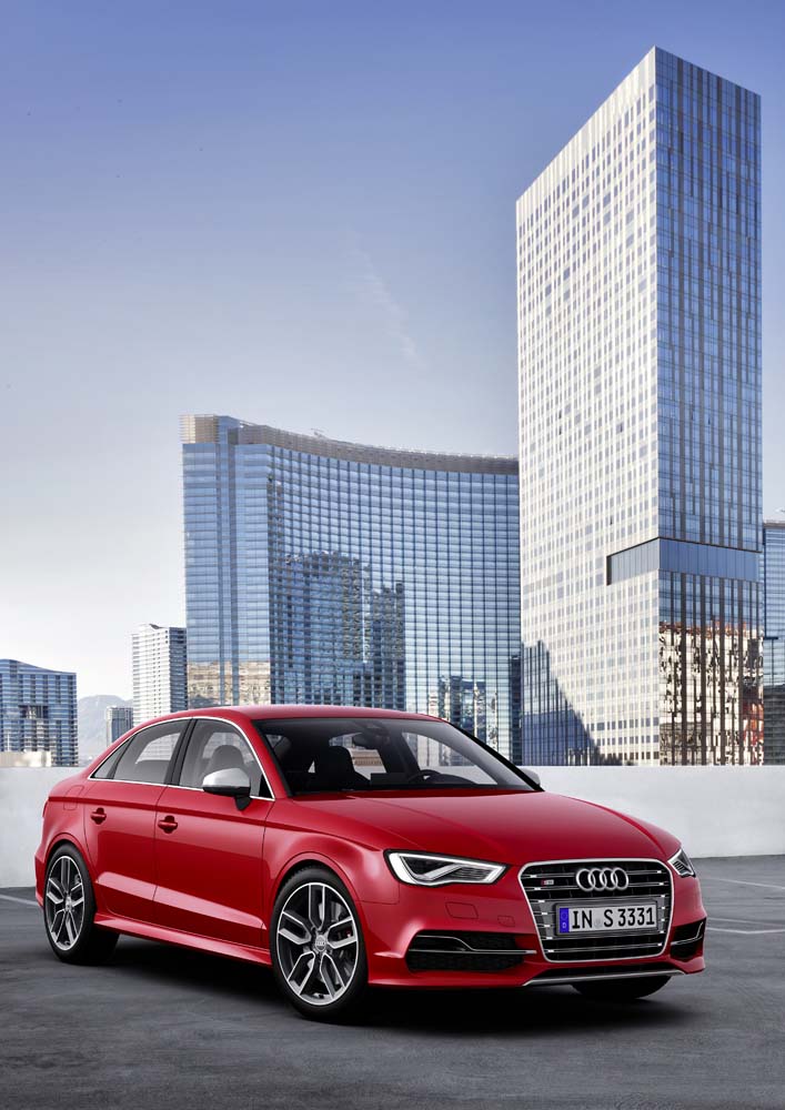 Audi S3 s-a pozitionat, inca de la lansare, in topul celor mai ravnite hot hatch-uri premium, alaturi de BMW M135i sau noul Mercedes-Benz A45 AMG. Anul 2013 a adus in peisaj versiunea sedan, fara a altera performantele care il recomanda. In acest moment, singurul producator care are o replica, frumoasa ce-i drept, este Mercedes-Benz prin CLA 45 AMG (2 litri turbo benzina 360 CP, cutie de viteze automata cu 7 trepte, tractiune integrala 4MATIC, 0-100 km/h in 4,6 secunde) si asta pana la aparitia unui RS3 sedan, bineinteles fara sanse reale sa se produca acum. Astfel, S3 sedan umple goluri lasate spre exemplu de Mitsubishi EVO X, fiind pozitionat intre un hot hatch de masa, a carui valoare este in jurul a 30.000 euro cu TVA, si un sedan sportiv cum este spre exemplu S4, al carui pret se apropie de 60.000 euro cu TVA. In Romania, noul S3 sedan poate fi comandat la un pret incepand cu 44.000 euro cu TVA, dar pentru a fi configurat asa cum ii sta bine unui Audi mai ai nevoie de cel putin 5.000 euro pentru dotari optionale.