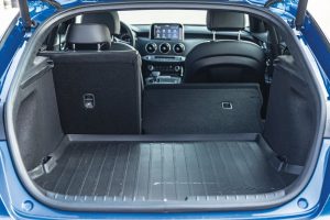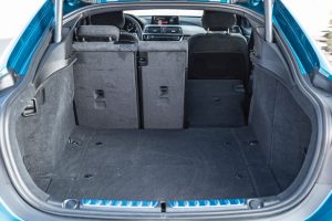 Dacă la interior avantajele s-au împărțit echitabil de ambele părți, portbagajul modelului german este clar peste al coreeanului: cei 480 litri sunt identici cu ai sedanului Seria 3 și cu 74 litri peste ai lui Stinger. În plus, bancheta este fracționabilă 40/20/40% (doar 33/66% la Kia), fapt care oferă posibilitatea transportului skiurilor fără a renunța la locurile exterioare. Niciunul dintre modele nu formează un prag la rabatarea spătarului banchetei, dar la Stinger spătarul nu ajunge la orizontală, ci rămâne puțin oblic.