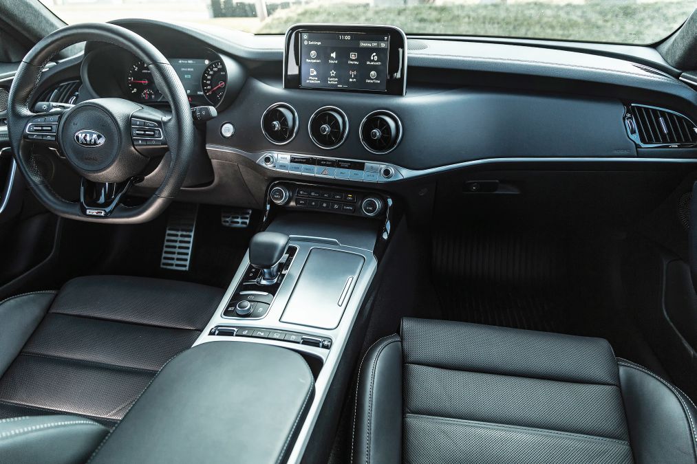 Per ansamblu, materialele și asamblările sunt de top în ambele modele, cu excepția plasticului folosit de Kia pentru zona centrală a volanului, care nu are legătură cu restul mașinii. Coreeanul păcătuiește la capitolul vizibilitate, mai slabă decât la neamț în special spre spate, din cauza lunetei extrem de mici și foarte înclinate. Pe banchetă se intră mai ușor în Stinger, grație ușilor ceva mai lungi, iar pasagerii au 2 cm în plus spațiu la picioare și un șezut mai lung cu 3 cm. În plus, primesc și mufă USB, indisponibilă la BMW. Pasagerii de pe bancheta bavarezului stau mai jos, de aceea intră puțin mai dificil în mașină, dar beneficiază de o înălțime interioară ceva mai mare (+1 cm) și de o vizibilitate exterioară mai bună, datorită liniei orizontale a geamurilor laterale. În niciunul dintre modele nu poate lua loc comod un al treilea pasager pe banchetă, din cauza șezutului profilat pentru două persoane și tunelului central foarte amplu, dar cei doi pasageri de pe locurile exterioare pot primi opțional încălzire în banchetă.