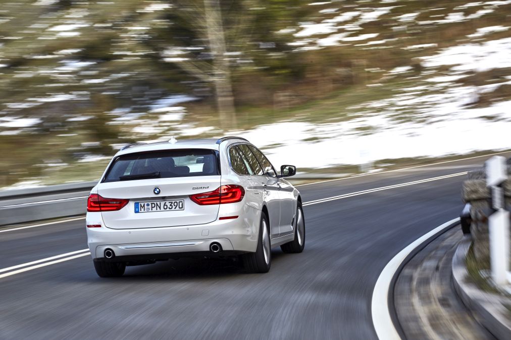 BMW 520d Touring 2017Nu demult, m-am delectat cu dinamica fără egal în segment a sedanului Seriei 5. L-am testat atât în versiunea 530d xDrive (3 litri, diesel, 265 CP și 620 Nm), cât și în varianta 540i xDrive (3 litri turbo, benzină, 340 CP și 450 Nm), ultimul într-un comparativ cu Mercedes-Benz E 400 4Matic. Ambele au motoare V6 și tracțiune integrală. De aceea, când am ales varianta break a testului de față, am decis să fiu mai rațional. Pentru că o astfel de mașină atrage, pe lângă clienții privați, și flotele de mașini, am optat pentru propulsorul diesel de bază echipat cu tracțiune spate. Diferența de preț între 520d și 530d, ambele echipate cu transmisie automată Steptronic și tracțiune spate, nu este neglijabilă: aproape 6.800 euro. Este posibil însă ca în viitor să existe și un model intermediar 525d, propulsat de motorul de 2 litri, într-o variantă superioară de putere (probabil biturbo, de 224 CP).