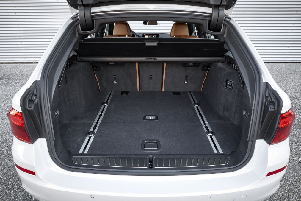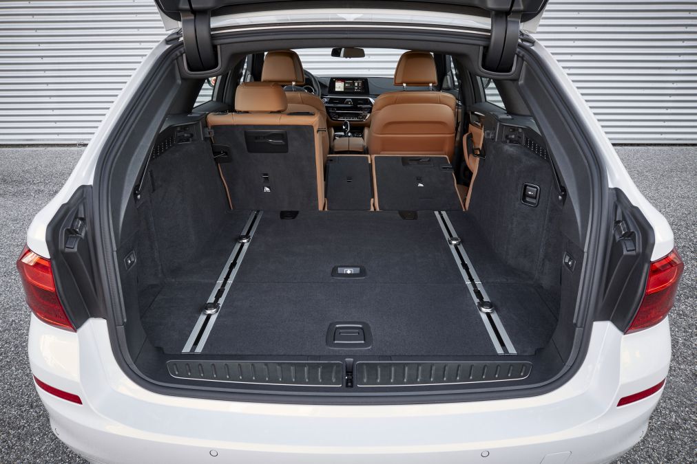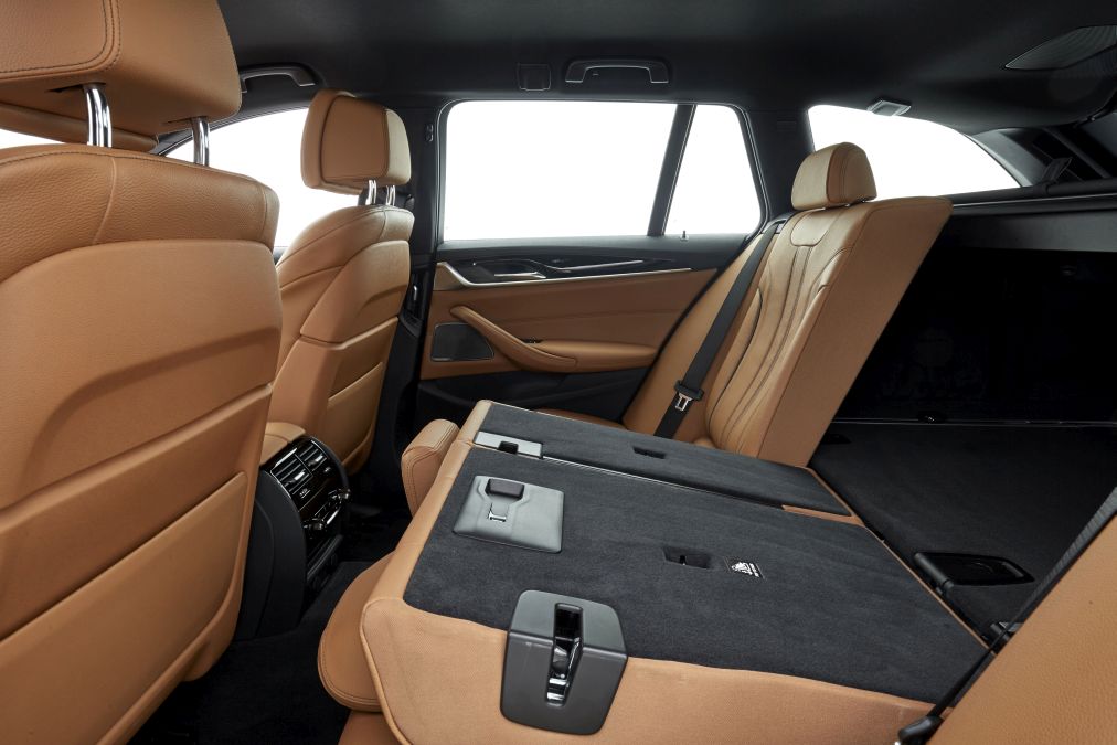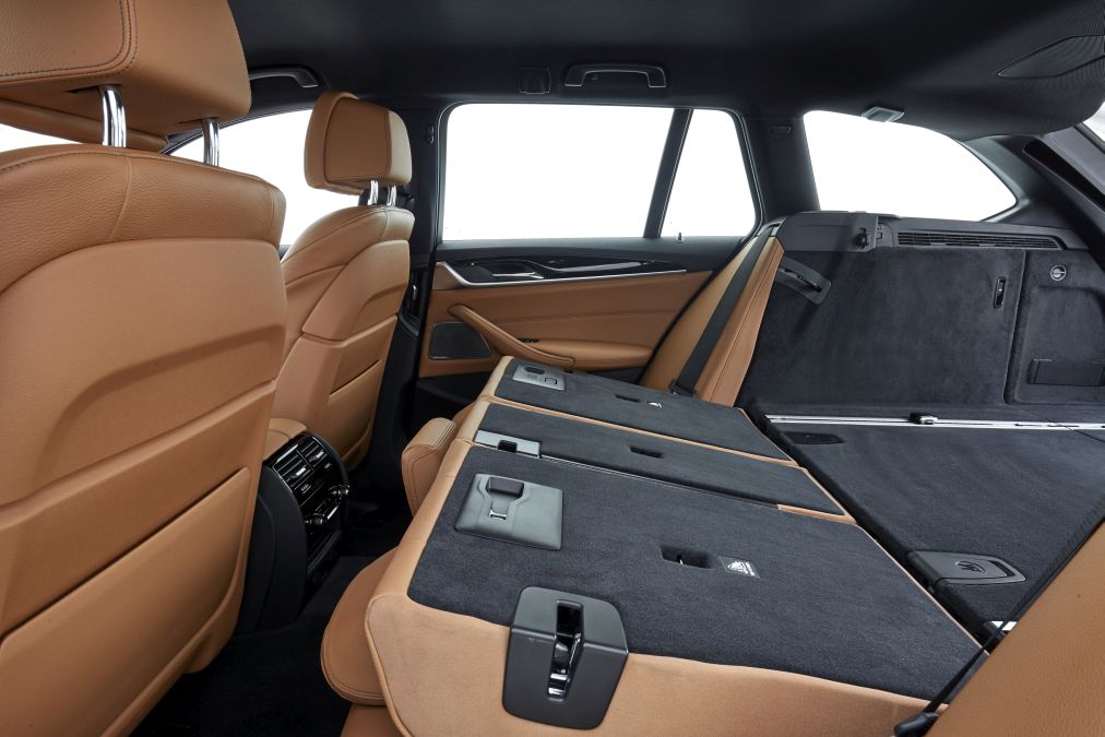BMW 520d Touring 2017La interior, vizați de creșterea dimensiunilor au fost în principal pasagerii de pe banchetă, care au primit 18 mm în plus spațiu la genunchi. În plus, lățimea banchetei este atât de mare, încât aceasta poate adăposti trei scaune pentru copii. Evident, de aceeași atenție s-a bucurat și portbagajul, cel mai vânat element la achiziția unui break.