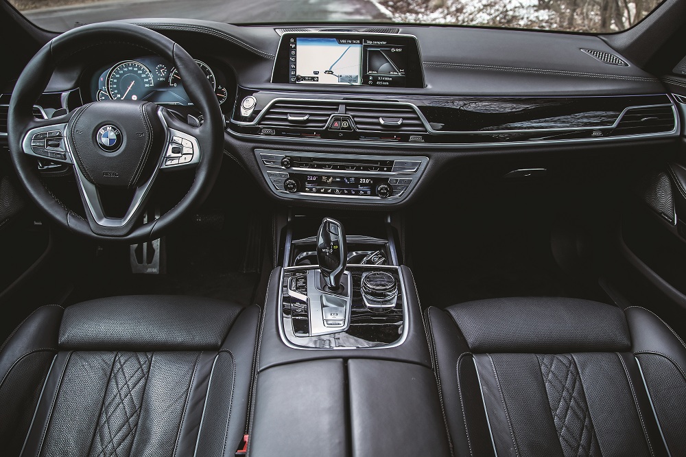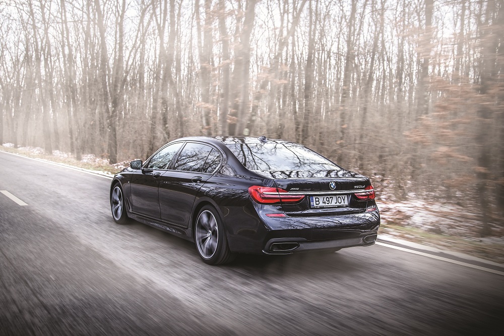 Urc la volan și arunc pe șosea toți cei 760 Nm cu o simplă apăsare de accelerație, iar asta mă fericește peste măsură! Apăs butonul start-stop, dar murmurul greu de deslușit al motorului nu anunță nimic din apocalipsa ce așteaptă să se dezlănțuie asupra celor patru roți. Cuplez joystick-ul în D, selectez modul Comfort și apăs ușor accelerația. Totul se petrece fin, fără nici cea mai mică urmă de violență, fapt care-mi dă de înțeles că 750Ld xDrive este, pe cât de potent, pe atât de docil. Accelerez moderat, iar cutia cu opt trepte schimbă vitezele în vecinătatea a 1.500 rpm, folosind din plin cuplul de 450 Nm disponibil de la 1.000 rpm. (cuplul maxim este de 760 Nm între 2.000 și 3.000 rpm). O escapadă pe DN1 îmi dezvăluie consumul pe drum național: respectarea vitezelor legale și folosirea cu precădere a ultimelor trepte ale transmisiei stabilizează valoarea la 6,5 l/100 km.