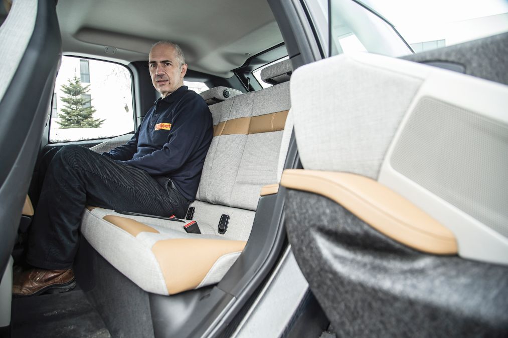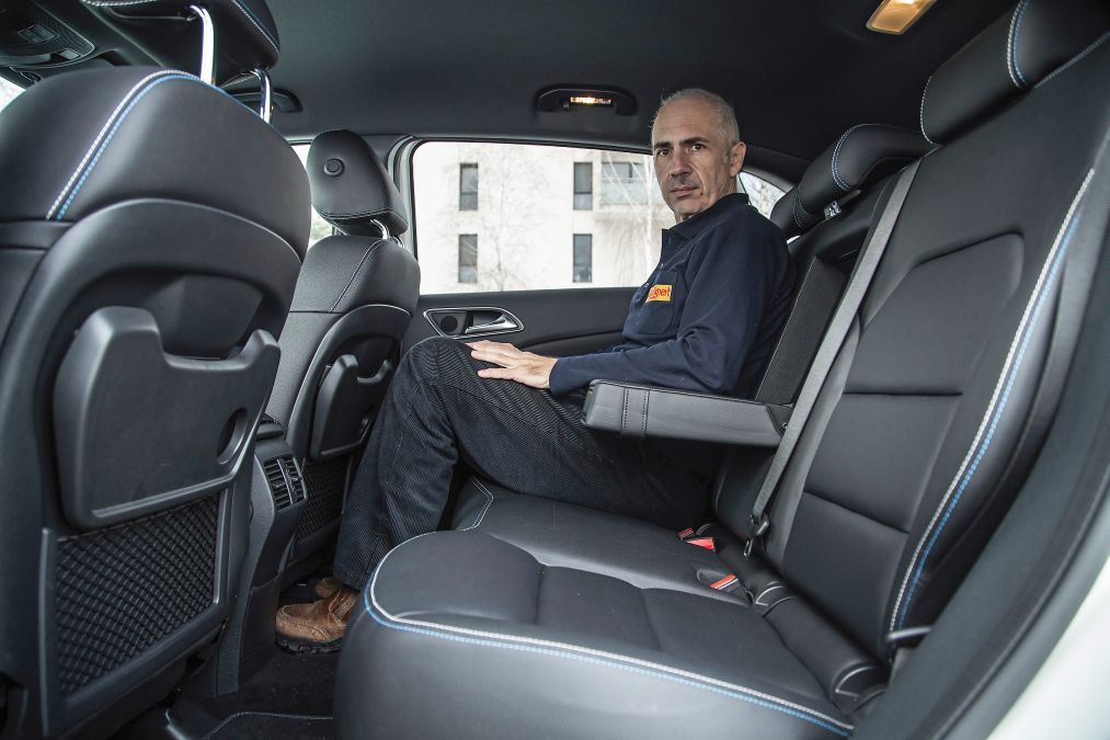 Pe locurile din spate este mai mult loc la genunchi și la cap în B 250 e decât în i3. Ca să urci în spate la BMW, trebuie întâi să deschizi ușa de la șofer și abia apoi jumătatea de ușă din spate ca să poți accede la bord. În față însă, și BMW oferă un spațiu aerisit datorită lipsei tunelului central, dar poziția de condus este aproape la fel de înaltă ca și în B-Class. Există și o explicație tehnică pentru acest lucru: platforma lui i3 este realizată din două module – Drive, realizată dintr-o structură de aluminiu care susține motorul, bateria și trenul de rulare și modulul Life care înglobează celula pasagerilor realizată din plastic ranforsat cu fibră de carbon, amplasată deasupra. De aceea, în i3 se stă neobișnuit de sus pentru un BMW. Datorită acestei construcții hibride, BMW i3 este foarte ușor. Chiar și cu noua baterie care cântărește cu 50 kg mai mult, i3 are doar 1.404 kg. Prin comparație, B250 e cântărește nu mai puțin de 1.829 kg, adică cu 524 kg mai mult!