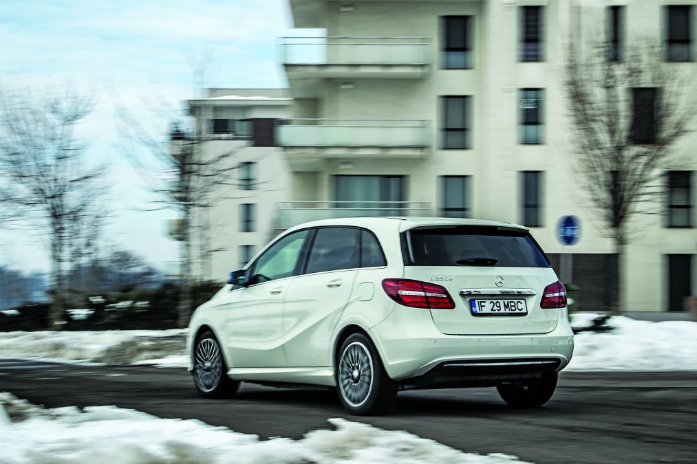 B 250 e se conduce mai incisiv decât un B-Class cu motor termic având o distribuție mai bună a maselor. Dar un mic ruliu există și aici și în viraje se simte masa mare a mașinii.