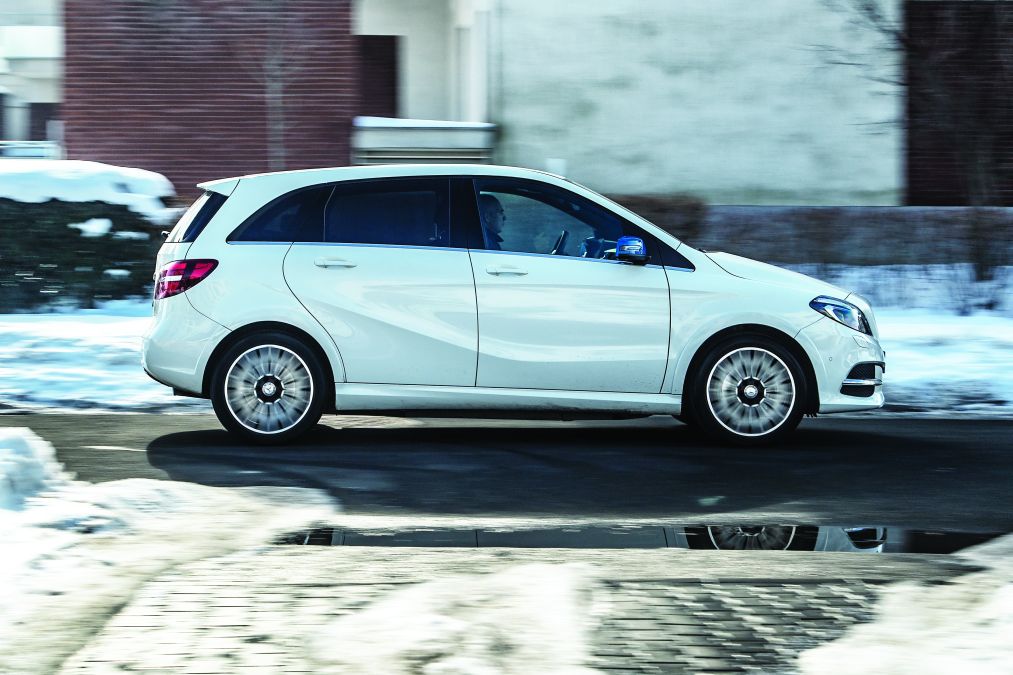 Acest test comparativ ar putea părea dezechilibrat la prima vedere. Pe de o parte, avem BMW i3, parte a unui proiect revoluționar de anvergură care a costat 6 miliarde euro și din care au rezultat două modele – i3 și i8 – construite pe o platformă dedicată și realizată din materiale revoluționare pentru producția de mare serie și nu numai. De partea cealaltă avem Mercedes B 250 e, care este și arată ca un B-Class și care se produce pe aceeași linie de fabricație cu modelul convențional. După i3 toată lumea întoarce capul în timp ce B250 e trece aproape neobservat prin trafic. i3 atrage prin designul neobișnuit cu cele două jumătăți de ușă în spate, lipsa montantului central și roțile mari și înguste ca niște felii de pizza. B 250 e e foarte discret ca înfățișare însă Mercedes declară că oferă toate avantajele de la Clasa B.