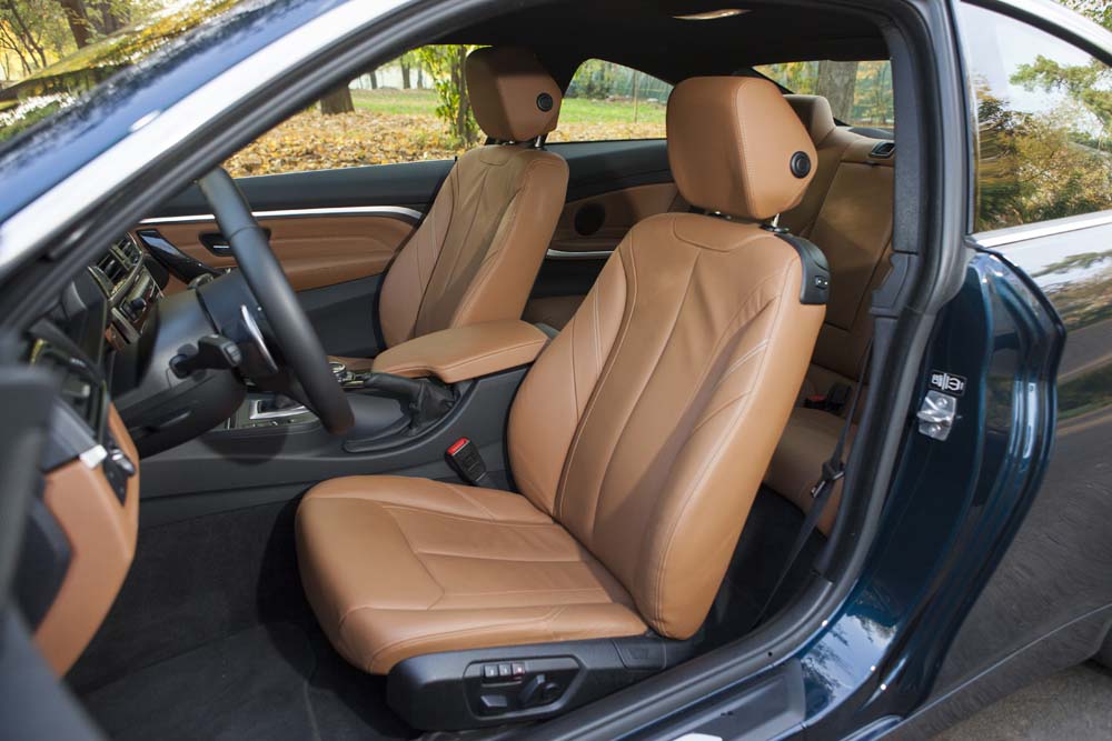 Totuși, pentru că detaliile fac diferență, iar aici este vorba fix despre detalii, pentru un Seria 4 aș apela fără îndoială la linia Sport, mult mai potrivită unui Coupe. Cel puțin până la o anumită vârstă a șoferului. Până să părăsesc interiorul aș mai puncta două aspecte. Minusul îl primesc, fără discuție, sezuturile scaunelor. Aproape plate, ele oferă un suport contestabil, în cazul șofatului mai dinamic nefiind exclus să ajungi să dansezi involuntar a la ursul Baloo (noroc de lista cu opționale, unde trebuie să cauți repejor o alternativă sportivă scaunelor standard). Plusul, bulina roșie, îi este acordat volanului M, o capodoperă BMW, altă dotare opțională pe care trebuie s-o bifezi! Neapărat! Am fost destul de clar? Bun.