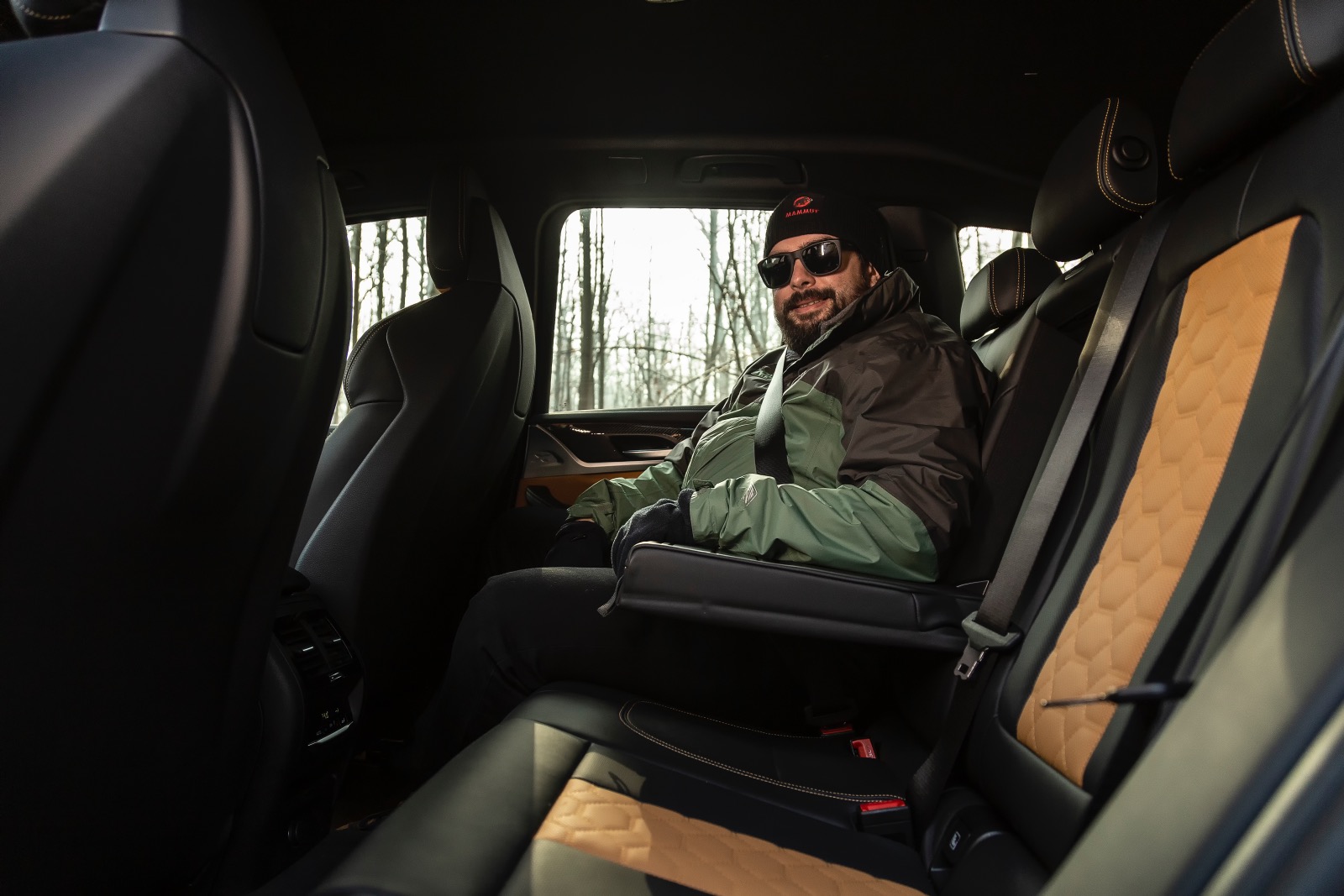 Poziția la volan este înaltă, dar fără a fi deranjantă, iar scaunele sport sunt excelente, având inclusiv tetieră reglabilă electric. Modelul de test era echipar cu scaune M Sport. Calitatea materialelor este foarte bună, piele și inserțiile de carbon fiind prezente peste tot la interior.