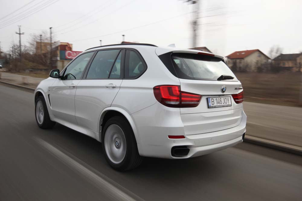 Poate doar direcţia (chiar şi în modul Sport Plus) putea fi mai transparentă cu situaţia care se petrece între roţile din faţă şi asfalt. Această transmite cu întârziere orice subvirare, lucru greu de anticipat în noul X5, dar şi maigreu de corectat. La drum întins şi selectat modul ECO Pro se pot obţine valori bune de consum, eu reuşind un 8,5 l/100 km,respectând atât limitele de viteză, cât şi pedala de acceleraţie – un ritm mai alert aduce în plus1,5 l la fiecare100km.La finalul celor 700 km efectuaţi cu un singur plin de carburant, X5 M50d xDrive se dovedeşte a fi un SUV de toată ziua şi care, la nevoie, îşi poate schimba pantofii lucioşi cu o pereche de ghete pentru 100 m garduri.