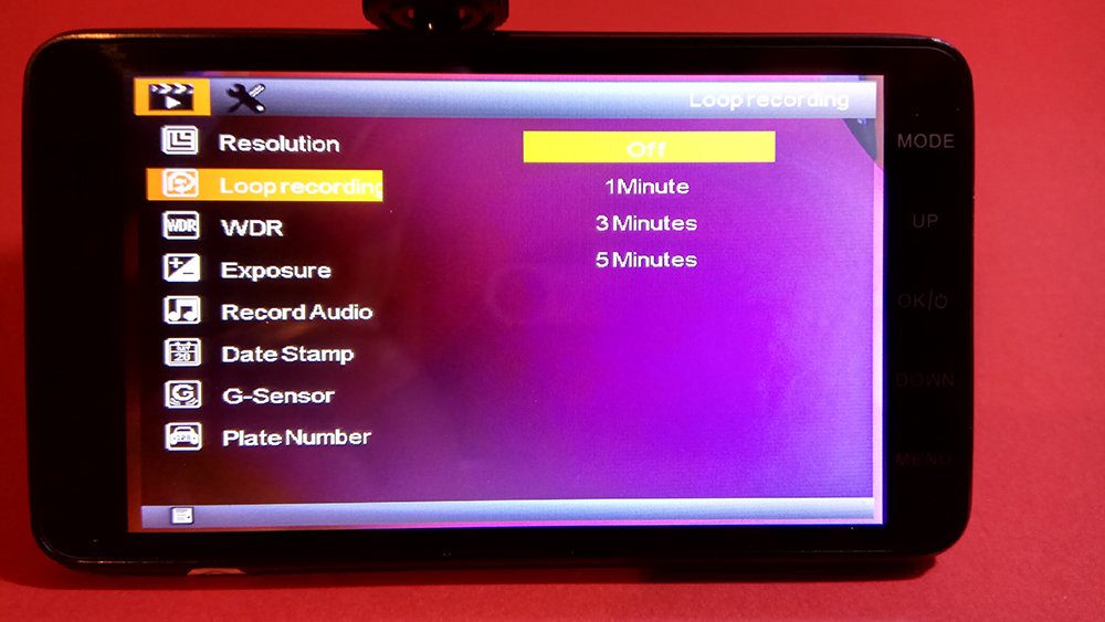 De asemenea, poate fi selectat dacă să filmeze în buclă (clipuri lungi de 1,3 sau 5 minute) sau continuu, în limita capacității cardului, fapt excelent dacă doriți, să filmați clipuri mai lungi (mulți concurenți nu sunt capabili de acest lucru). Nu există, însă, posibilitatea setării balansului de alb decât pentru funcția foto, iar aparatul nu este dotat cu modul GPS, de aceea nu poate afișa nici viteza de rulare, nici coordonatele locației. Pot fi, totuși, specificate pe filmare data, ora și numărul de înmatriculare al mașinii.