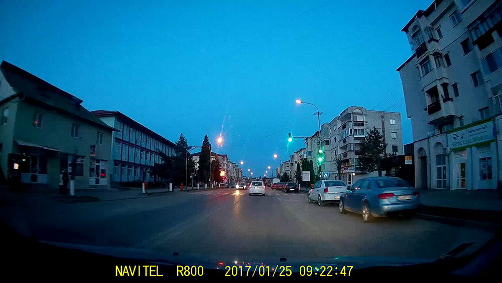 Aflată la mijlocul spectrului de prețuri ale camerelor DVR, Navitel R800 se achită excelent de sarcini, fără însă a excela la capitolul funcții. Filmarea este curată, clară și contrastantă, cu un unghi de cuprindere senzațional și un interval dinamic bun (atât zonele luminate, cât și cele întunecate își păstrează bine detaliile). Lipsa modulului GPS nu permite afișarea coordonatelor geografice pe clip.