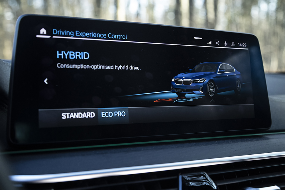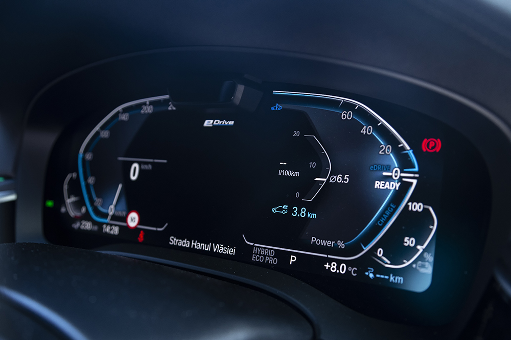 La BMW, funcționarea tuturor componentelor (a sistemului de propulsie, direcției, suspensiei etc.) e concentrată în patru moduri de rulare: Electric, Hybrid, Sport și Adaptive. În Hybrid, poți opta pentru două funcții: Standard, ce încarcă bateria la decelerări, sau Eco Pro, care face coasting în majoritatea situațiilor și decelerează, încărcând bateria, numai la apropierea de obstacole. Un mod adaptiv de regenerare a energiei.