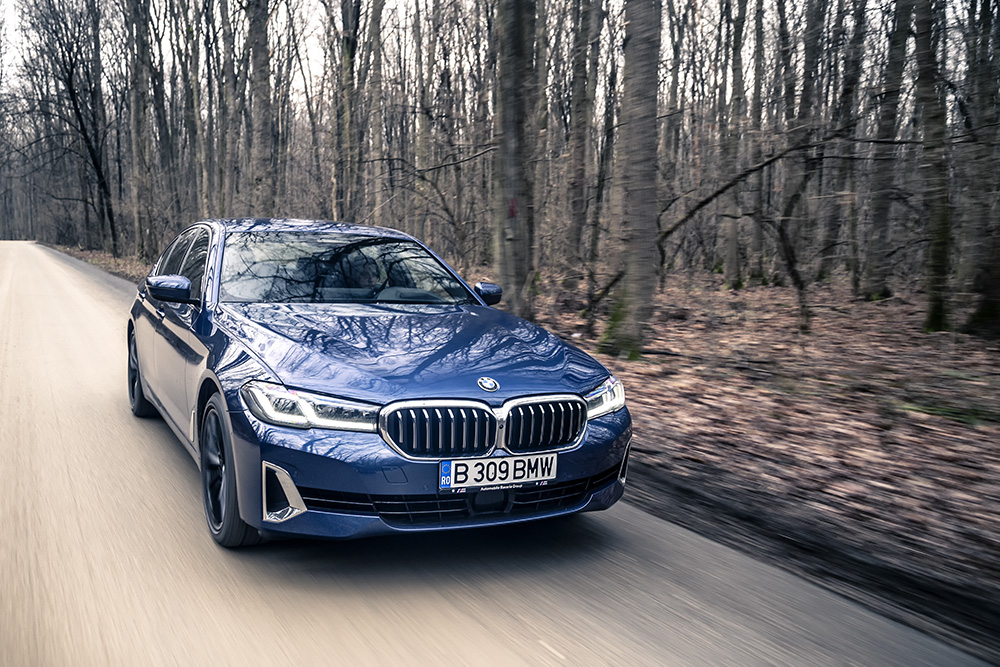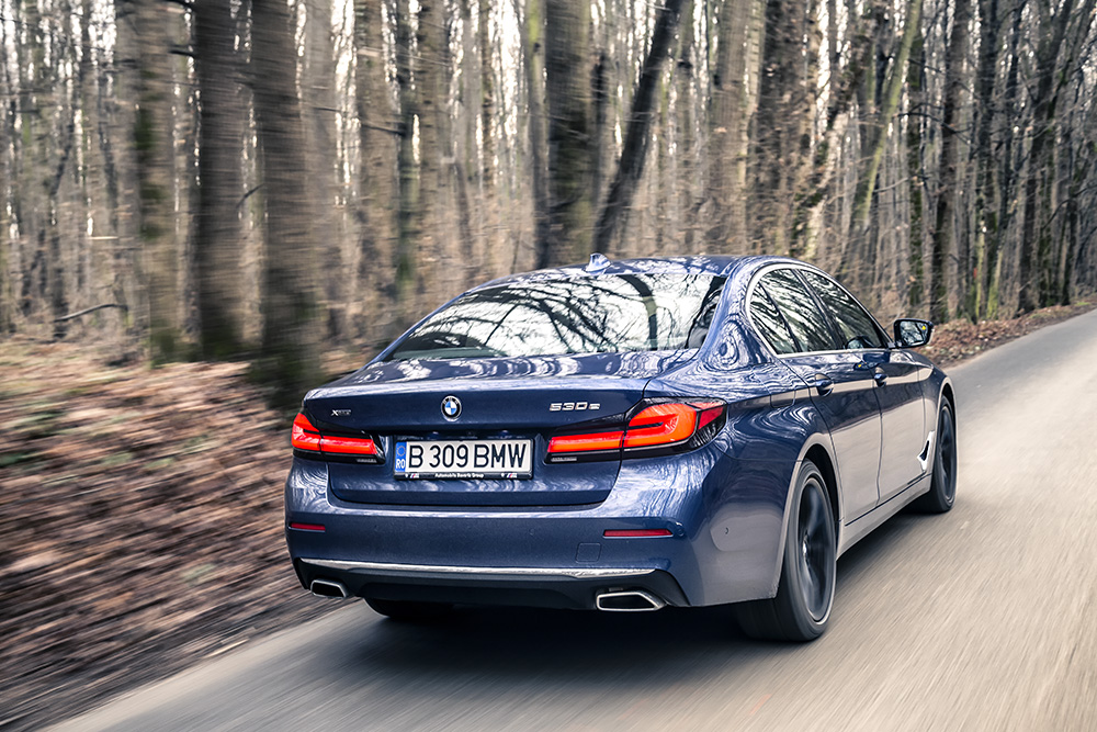 Pe șosea, ambele sisteme de tracțiune integrală se comportă ireproșabil, cu aderență până-n pânzele albe, și n-o să le poți duce la limită decât dacă ești șofer magistral sau inconștient. Diferența este că, dacă Audi se simte analitic, calculat și nu-ți transmite informații concludente prin intermediul direcției, volanul gros și mai puțin asistat al lui 530e îl implică mai mult pe șofer, iar ampatamentul mai mare cu 6 cm creează un plus de stabilitate. Iar direcția integrală e o trufă care îl ridică pe 530e deasupra lui A6. Suspensia adaptivă a 5-ului este peste cea a lui A6 și în oraș, unde filtrează mai bine denivelările (deși A6 are jante mai mici), și pe viraje.