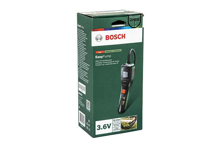 Foarte bine realizat, oferă posibilitatea de a folosi aceeași baterie (2,5 A) și la alte aparate Bosch (fără ea, costă 309 lei). S-a dovedit a fi cel de departe mai rapid. Este însă destul de zgomotos, iar manometrul are unele inadvertențe. Indică foarte precis în timpul umflării, dar, după ce termină treaba și vrei să măsori presiunea, indică mai puțin decât valoarea reală.