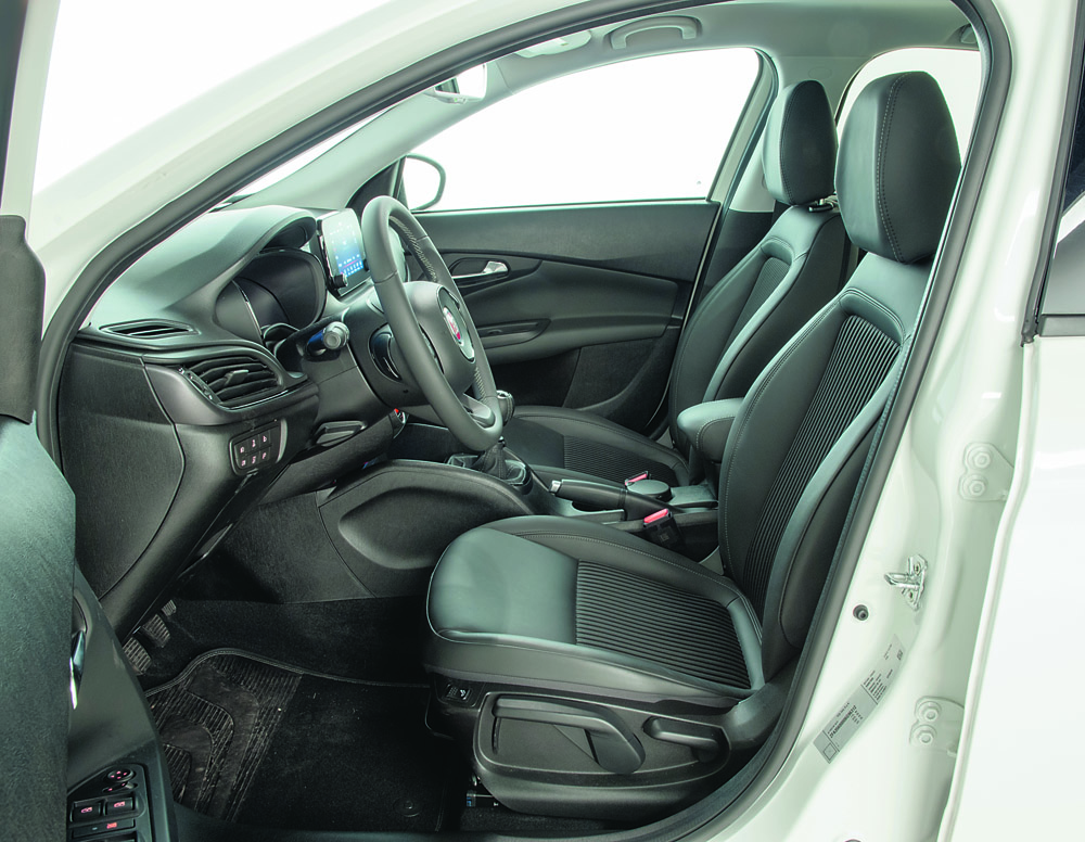 deasupra volanului cu cel mai mic diametru din segment. Ieșind din 308 și intrând în Tipo (sau coborând în Tipo, pentru că poziția de conducere e cu 3 cm mai joasă), descoperi o poziție mai firească la volan. Este drept, vizibilitatea asupra traficului este un pic mai slabă, pentru că în 308 se stă mai degrabă ca într-un crossover, decât ca într-un hatchback compact. În spate, călătorii din Tipo stau mai lejer, pentru că atât înălțimea interioară (+3 cm) cât și spațiul mediu dintre spătarul banchetei și cel al scaunelor (+2,5 cm) sunt extrem de ofertante.