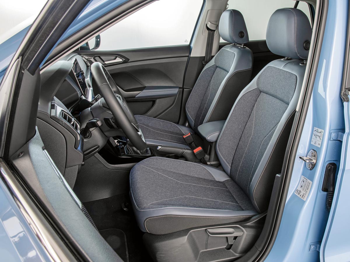T-Cross te întâmpină acum cu un bord revizuit nu atât ca formă, cât mai ales ca fond. Plasticul rigid de dinainte a lăsat loc unor materiale moi, iar latura digitală a devenit mai amplă prin prezența în dotarea standard a cockpitului digital. Referitor la ușurința gestionării și la informațiile variate, instrumentarul digital, deși e mai mic, este superior celui al lui Avenger, americanul având însă un sistem de infotainment mai ușor de utilizat și cu ecran mai mare. La ambele modele, sistemul de navigație e disponibil opțional, iar protocoalele Android Auto și Apple CarPlay rulează atât wireless, cât și cu cablu.
