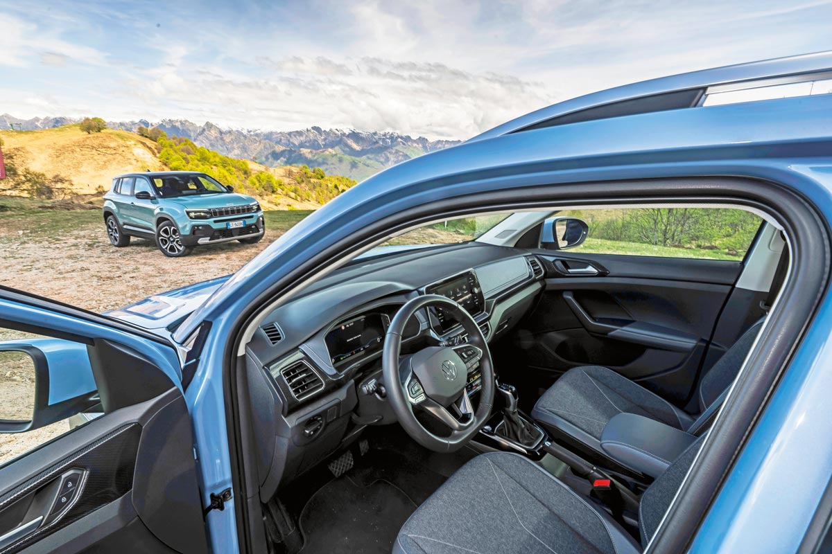 Însă, odată ajuns pe autostradă, ambele modele se laudă cu o izolare fonică bună, în special Jeepul, iar dacă vrei să te relaxezi există un sistem de asistență de nivel 2 cu control automat al volanului, care menține mașina pe trasă la viteza stabilită de șofer, sistem care la VW funcționează mai lin. Ambele modele au suficiente rezerve de putere pentru depășiri, T-Cross fiind ceva mai rapid. Iar acest scenariu specific, care implică viteze mari, îl avantajează pe neamț, al cărui TSI este gândit să ofere un echilibru între performanțe și consum în cele mai multe condiții.