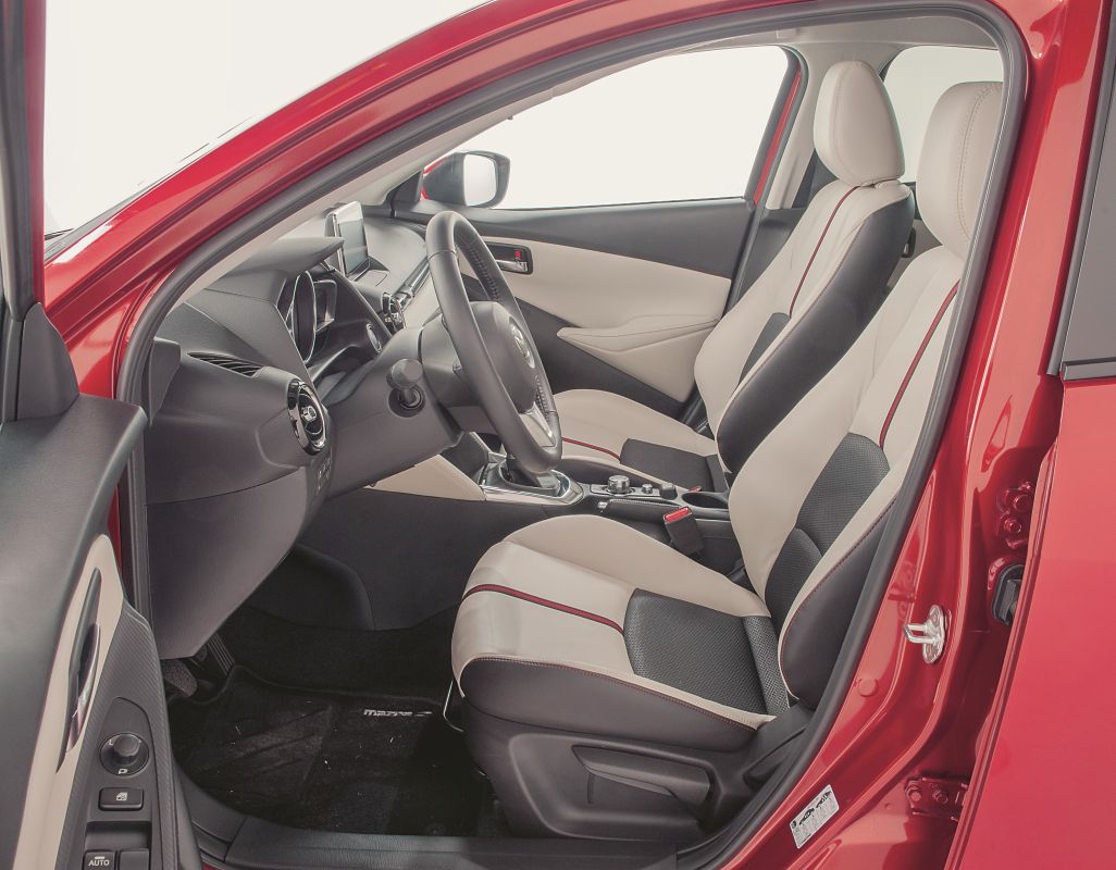 Clasa mică a progresat mult în ultimii ani și toate modelele oferă materiale bune și o finisare de calitate. Între ele excelează însă Mazda2, la care tapițeria de piele albă cu cusătură roșie prezentă pe mașina de test (600 euro extra) conferă o ambianță deosebită. Mazda e scumpă, dar prețul se regăsește în dotările foarte bune. Butoanele și gurile de ventilație sunt construite cu mare grijă pentru detalii și sunt de calitate. Și echiparea Allure de la Peugeot este peste media segmentului, 208 fiind singurul care dispune de climă bi-zonă, în timp ce celelalte modele au doar climatizare monozonă. Diverse alte echipamente în plus sau în minus nu înseamnă o calitate mai mare sau mai mică, dar pot oferi un confort superior. De exemplu, Mazda2 și Renault dispun de buton de start pentru motor, eliminând cheia de contact.