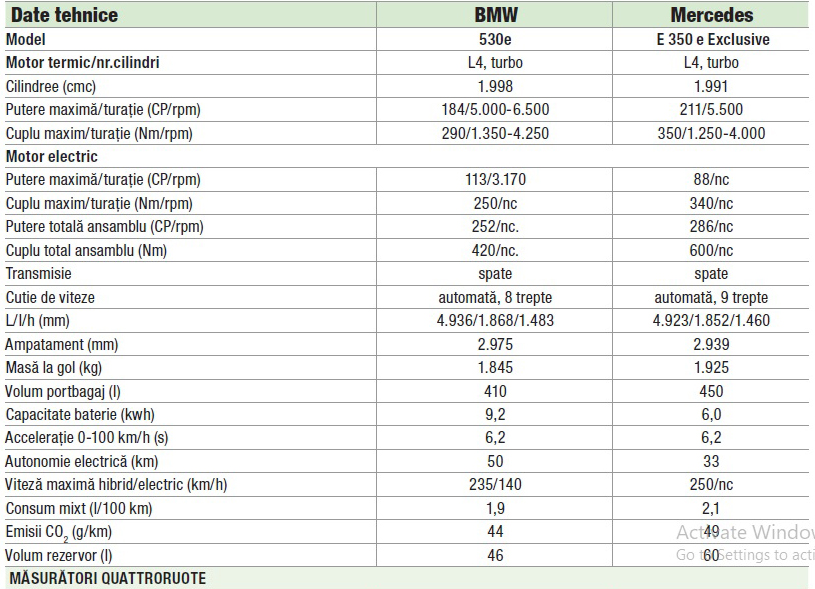 Faptul că BMW este mai ieftin ține și de politica bavarezilor care oferă versiunea Plug-In Hybrid la un preț apropiat de al versiunii pe benzină cu putere echivalentă 530i, în timp la Mercedes, versiunea Plug-In Hybrid este mai scumpă, fiind la nivelul lui E 400 4Matic cu motor V6 de 333 CP.