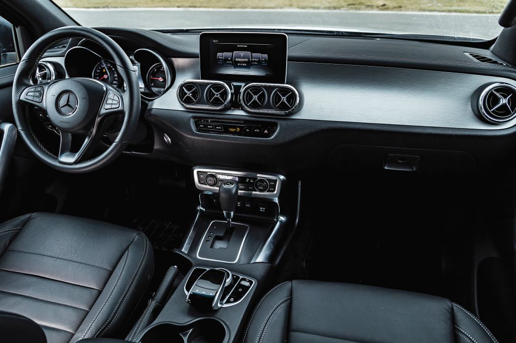Ergonomia lui Navara și X-Class este asemănătoare cu diferența că la Mercedes ecranul este poziționat mai sus și se operează din controllerul de pe tunelul median în timp ce la Nissan se utilizează butoane clasice. Sistemul multimedia cu navigație al lui Navara este inclus în prețul standard pe când la Mercedes sistemul Comand Online costă extra foarte mult (2.543 euro) și utilizează vechea generație de soft. Vestea bună este că există o alternativă mai ieftină – modulul de navigație Garmin (464 euro).