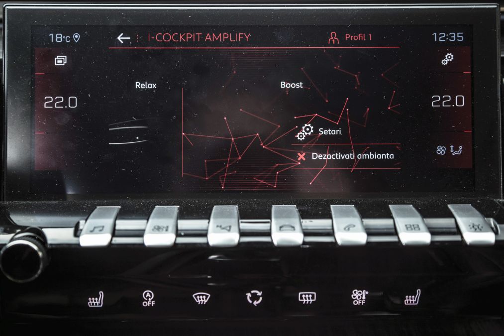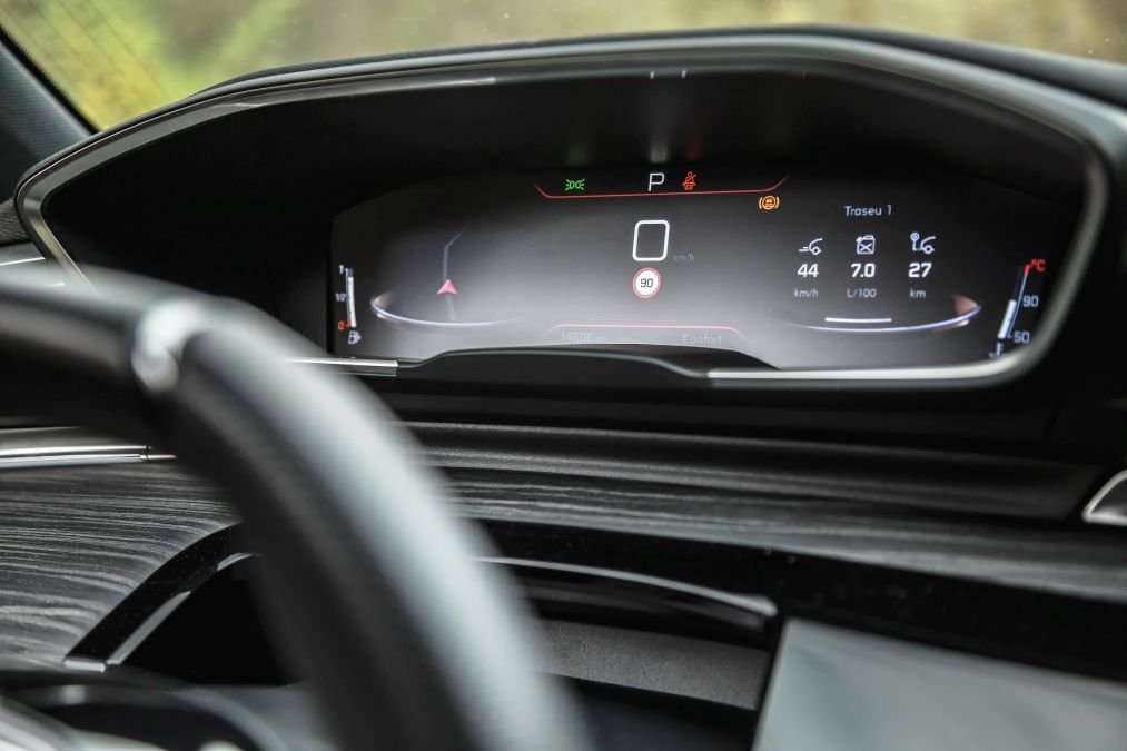 Chiar dacă motorul se aude la exterior ca un diesel tradițional, de îndată ce închizi ușa se liniștește complet. Nici scaunul nu vibrează ca la concurenți. Fiecare accelerare este acompaniată de schimburi ultra-rapide ale cutiei cu dublu ambreiaj, mai prompte decât la concurenți. Și, foarte important, cu cel mai mic consum din test. În oraș schimbă aproape imperceptibil, dar sistemul Stop/Start intră în scenă mai târziu decât la 508, abia când mașina este complet în repaus.
