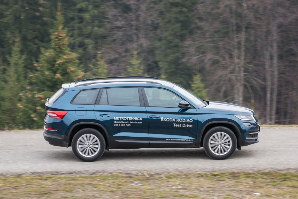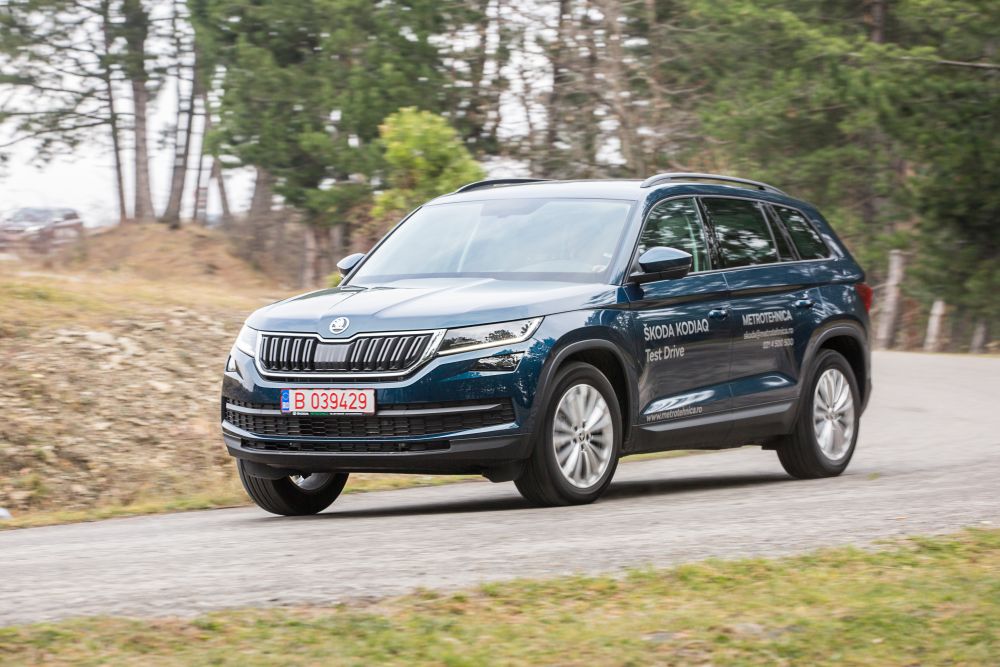 E o reală plăcere să ataci acele de păr cu Kodiaq, care își menține comportamentul neutru, iar atunci când subvirează, diferențialul central Haldex începe să distribuie fin puterea către puntea spate, restabilind aderența. Rezultatul: accelerația laterală obținută la testele de stabilitate a fost de 0,98 g, peste cele atinse de 5008 (0,97g), X-Trail (0,91g) și Koleos (0,88 g).