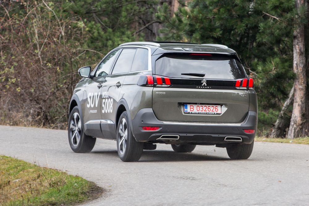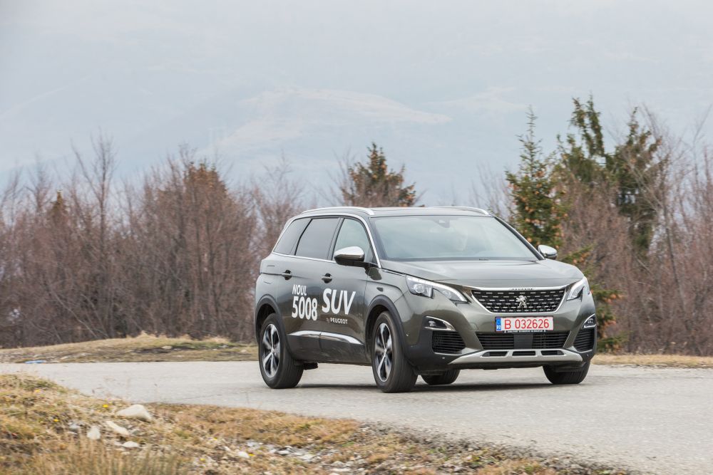 Complet diferit se comportă Peugeot 5008. În primul rând, francezul nu oferă nici opțional tracțiune integrală, ci doar punte motoare față, fapt care aduce cu sine dezavantaje clare în teren dificil și pe suprafețe alunecoase, unde nu poate face față niciunui concurent din grup. Există, totuși, sistemul electronic Grip Control, care optimizează tracțiunea, punându-mi la dispoziție cinci moduri de rulare. Totuși, lipsa tracțiunii integrale oferă și unele atuuri incontestabile.