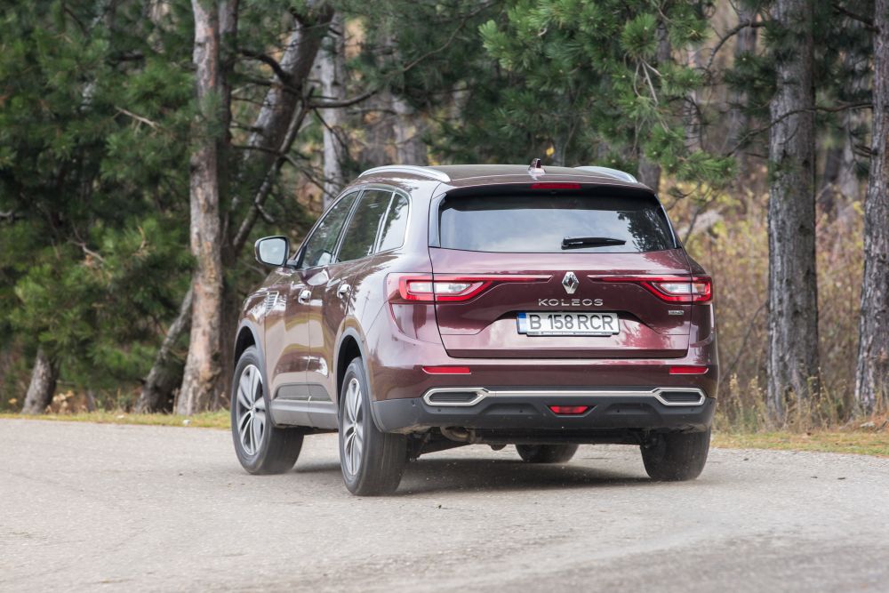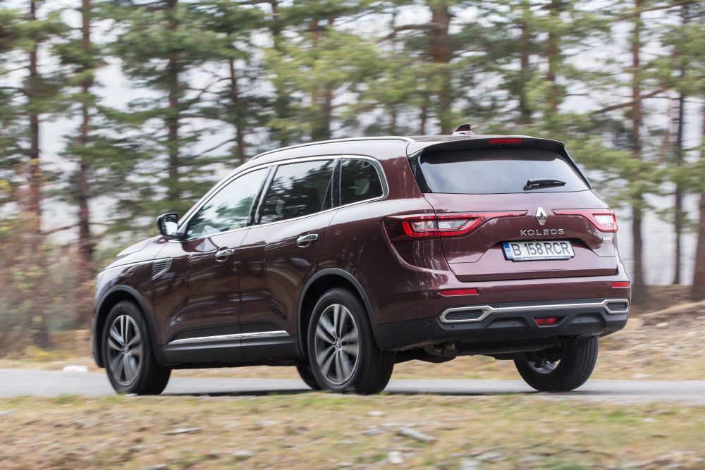 Zgomotul pare ceva mai prezent în habitaclu, semn că stratul de material fonoabsorbant este mai puțin generos, dar motorul se mișcă aproape la fel, în ciuda greutății superioare cu 65 kg a lui Koleos. Francezul are o suspensie extrem de confortabilă, în special la puntea spate (fiind depășită doar de 5008), fapt lăudabil în oraș, dar care își pune amprenta asupra ruliului pe virajele rapide.