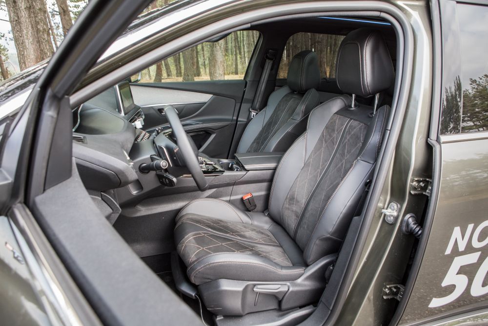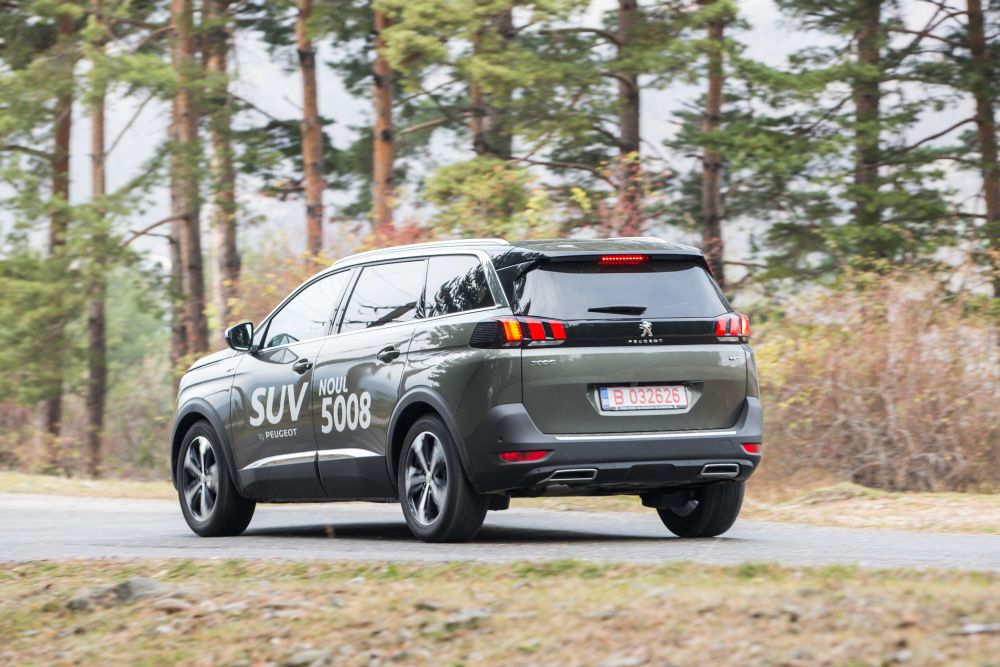 Totul, de la instrumentarul digital de 12,3 inci, configurabil în cinci moduri și volanul cu formă de manșă și diametru de doar 35 cm, până la joystick-ul schimbătorului de viteze mă fac să exclam: ”Helm, warp one engage!”. Mă ajută și cele mai profilate scaune pe care le-am întâlnit într-un model din segment – atât de elegant croite încât ar face cinste și sedanurilor de lux. În spate, 5008 este singurul model care nu oferă o banchetă, ci trei locuri individuale, profitând din plin de cel mai lat spațiu la umeri din grup (133 cm).