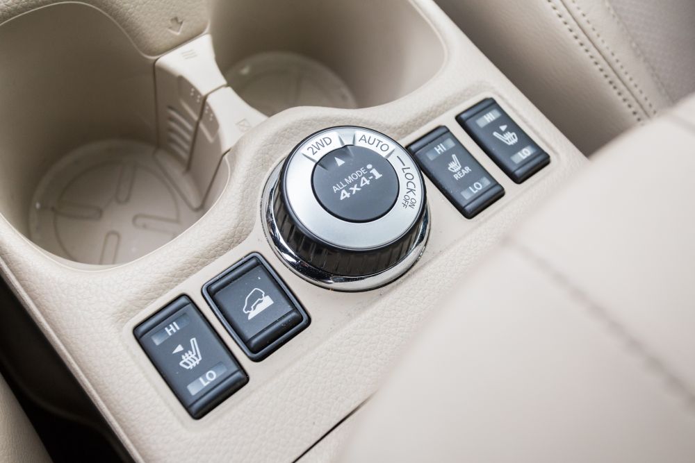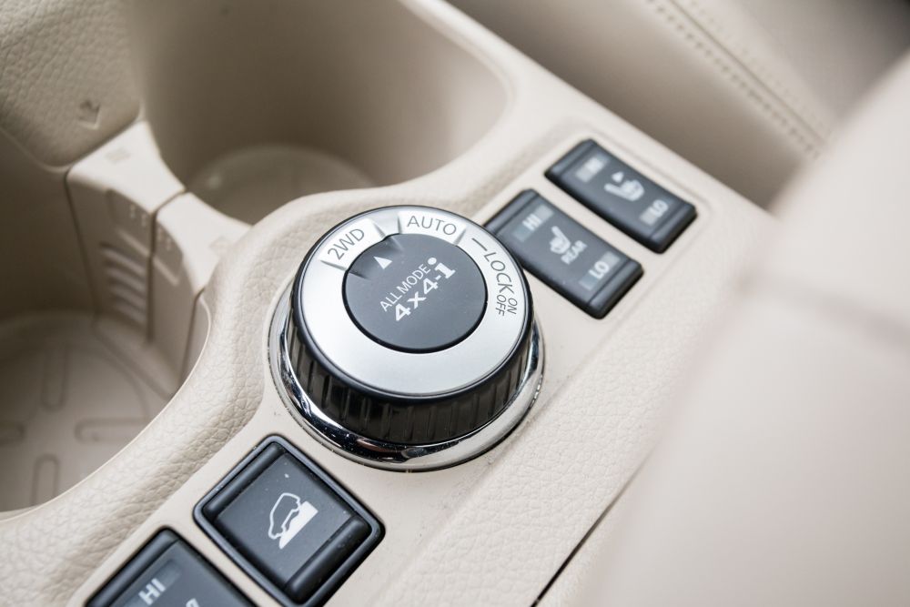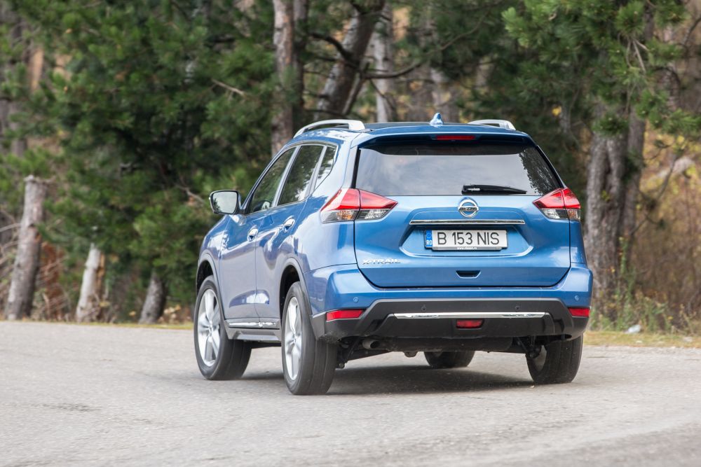La conducere, X-Trail se simte sigur și reacționează intuitiv când este dus la limită. Mă bucur de priza excelentă pe care mi-o oferă volanul gros primit la facelift (37,5 mm față de 34 mm înainte) și de forța relativ mare, de 2,0 kg necesară pentru a-l învârti (egalată doar de Koleos) și mă arunc prin viraje cu încredere. Motorul trage puternic indiferent de turație, dar distracția este limitată de efectul de bandă elastică al transmisiei CVT X-Tronic și de frânele care, deși bine dozate din pedală, opresc mașina mai greu decât la modelele concurente. O mențiune specială merită cel mai evoluat sistem 4×4 din grup, All Mode 4×4-i, care permite șoferului să folosească controller-ul de pe tunelul central, selectând modul de funcționare: 2WD (tracțiune față, consum minim), Auto (permite sistemului să varieze distribuția cuplului față/spate de la 100/0 la 50/50 in functie de conditiile de drum) și Lock (blochează cuplajul central, distribuind cuplul în proporție egală între punți). În plus, pot selecta din buton și funcția HDC (inexistentă la concurenții din grup), care îmi permite să mențin automat viteza constantă la 7 km/h la coborârea pantelor abrupte pe teren alunecos. În practică, X-Trail pare de neoprit pe noroi, indiferent de înclinația drumului.